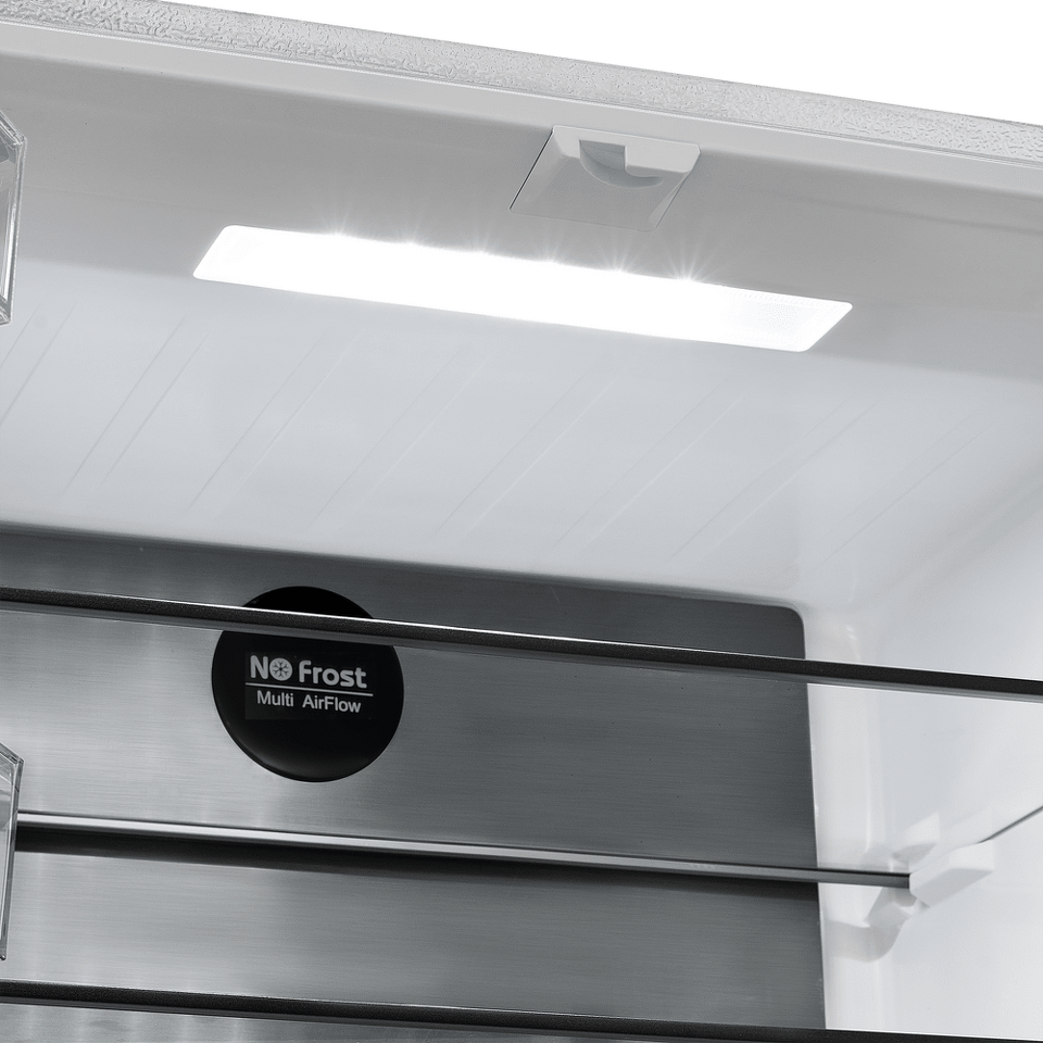 Система охлаждения всех трех камер - «Total No Frost». Это инновационная разработка, при которой холодный сухой воздух равномерно распределяется при помощи вентилятора по всей камере. Благодаря этому на продуктах и внутренних поверхностях прибора не образовывается иней. Теперь вам никогда не придется размораживать холодильник.