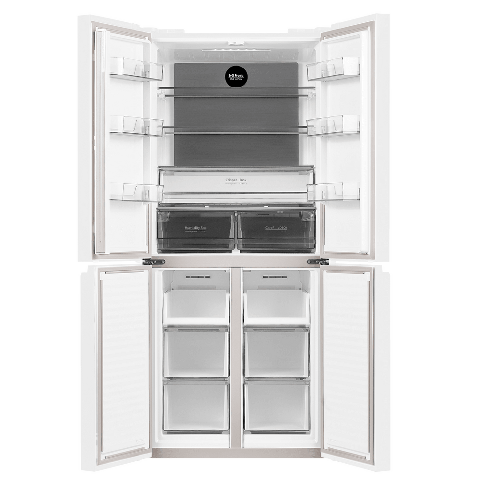 Трехкамерный холодильник Cross Door шириной 78 см с инверторным компрессором и сенсорным управлением с дисплеем не требует ручной разморозки благодаря технологии TOTAL NO FROST. Фасад выполнен из закаленного стекла.