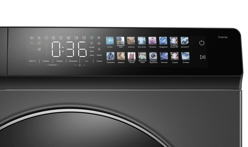 Ключевые характеристики:Экономичность и эффективность: Класс энергоэффективности A+++ для экономии электроэнергии и воды.Инверторный мотор: Обеспечивает тихую и долговечную работу с низким уровнем шума (62 дБ при стирке и 69 дБ при сушке).16 программ стирки и сушки: Специальные режимы для смешанных тканей, хлопка, гигиены, воздушной стирки, пуховиков, шерсти, нижнего и постельного белья, быстрая стирка 15', а также программы "Стирка + Сушка 60'", "Сушка" и «Smart»..Удобное сенсорное управление: Цветной LED-дисплей для лёгкой настройки параметров стирки.Удобство и функциональность: Датчик влажности, функция легкой глажки, регулировка температуры и отжима, отложенный старт.Удаление пятен и гигиена: Опция выбора интенсивности загрязнений, специальные режимы для удаления различных типов пятен, паровая обработка для дезинфекции.Безопасность: Контроль пенообразования и защита от перелива, блокировка от детей и подсветка барабана.Максимальная скорость вращения барабана 1400 об/мин в минуту обеспечивает эффективное удаление влаги из белья.Функция автовзвешивания – это интеллектуальный подход к уходу за бельем, где автоматическое определение веса загрузки позволяет оптимизировать расход воды, электроэнергии и моющих средств.