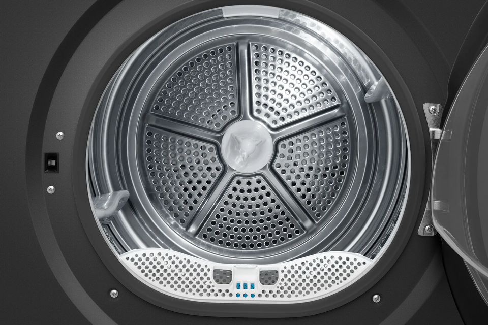 Эта модель сочетает в себе элегантный серый корпус с черной дверцей и высокую производительность. С загрузкой до 10 кг и тепловым насосом она обеспечивает экономичную сушку даже самых деликатных тканей.
