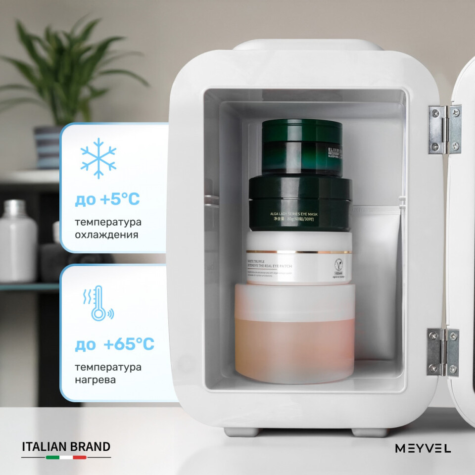 Meyvel MD-04C3W-RGB — компактный, стильный и по-настоящему универсальнй холодильник для напитков, который пригодится дома, в офисе или гостиничном номере. Благодаря небольшим габаритам его легко поставить на стол, тумбу или ресепшен, а при необходимости без труда переставить в другое место.