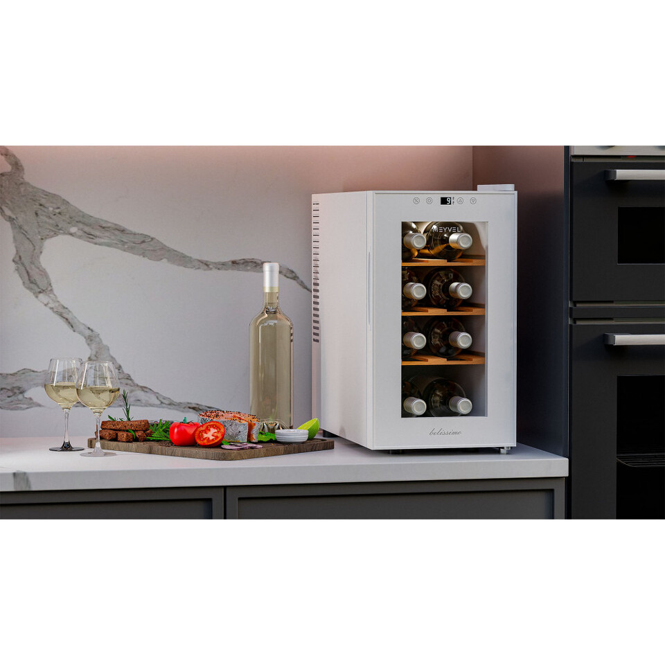 Meyvel MV08-TWF1-NEXT оснащён тремя полками из бука. Натуральное дерево не только красиво выглядит, но и устойчиво к влаге, не выделяет посторонних запахов. Бутылки располагаются удобно, с лёгким доступом к каждой из них. Рабочая температура регулируется в диапазоне от +8 до +18°C, чтобы хранить как лёгкие белые вина, так и более насыщенные красные.