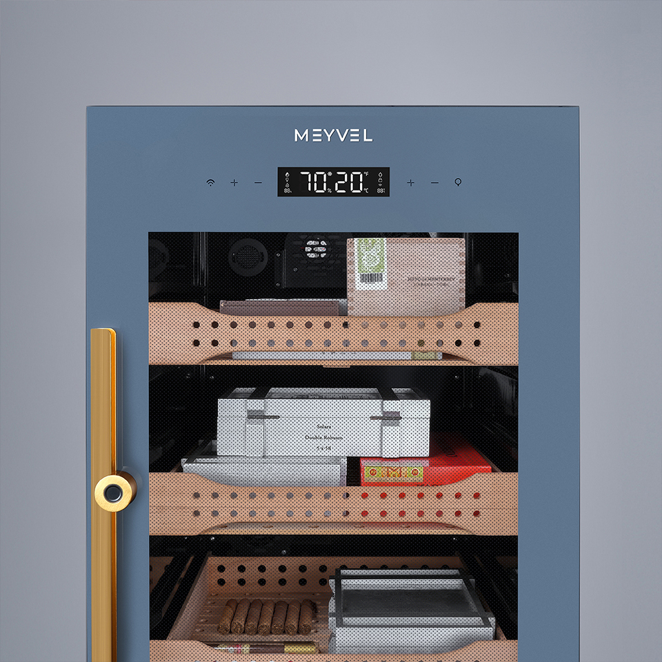 Meyvel MC-200BK (PRO) — выбор ценителей сигар. Этот премиальный хьюмидор с впечатляющим внутренним объемом в 200 литров, способным вместить до 1200 сигар.