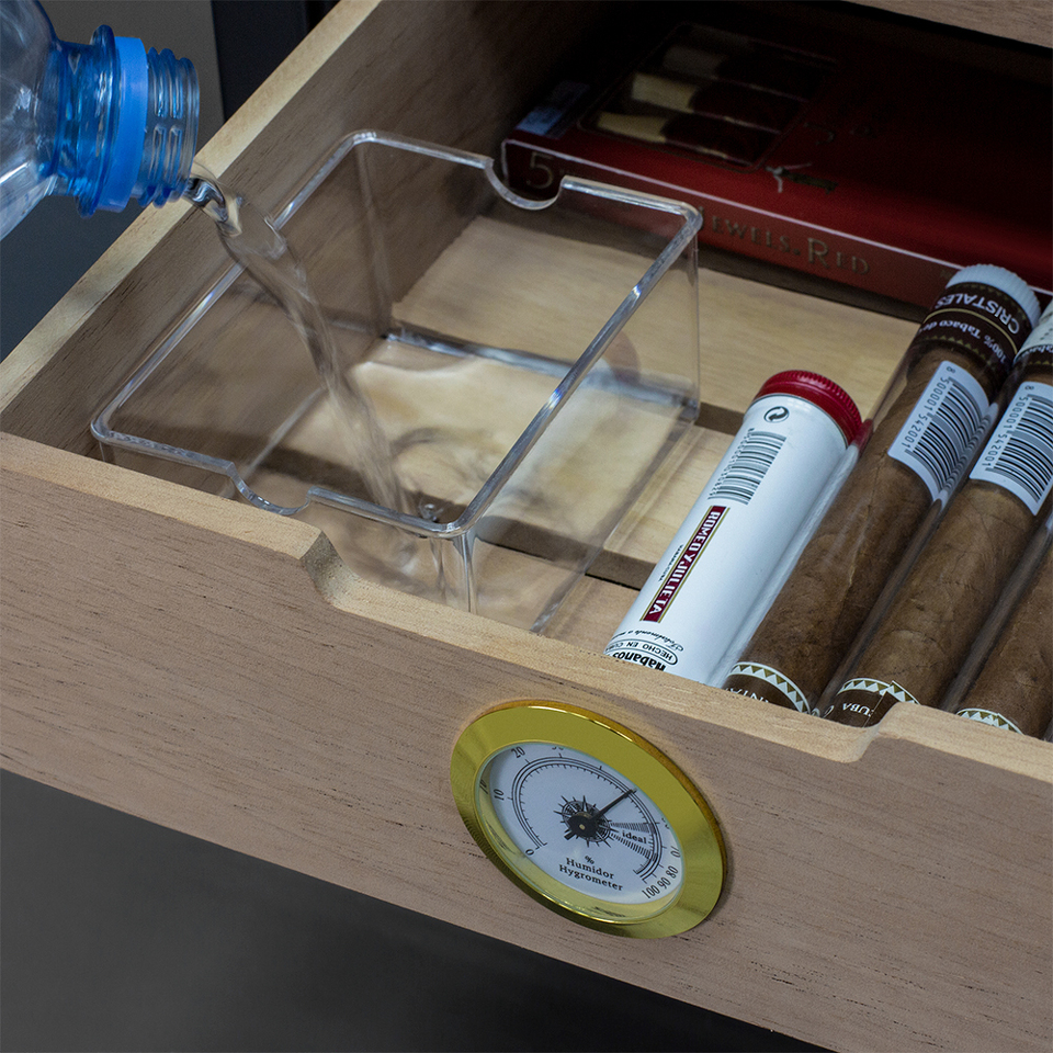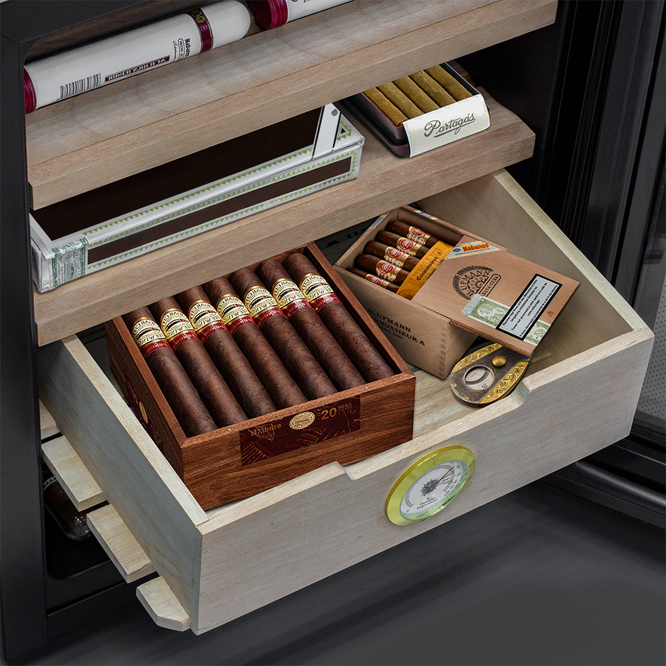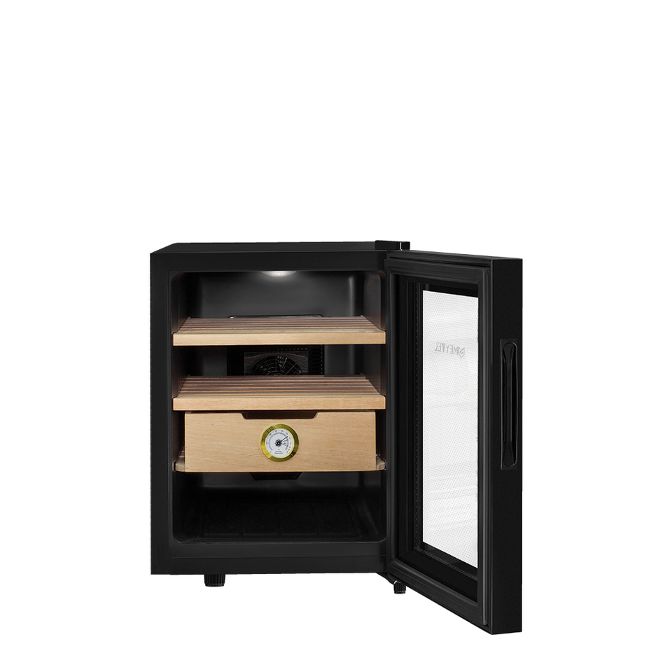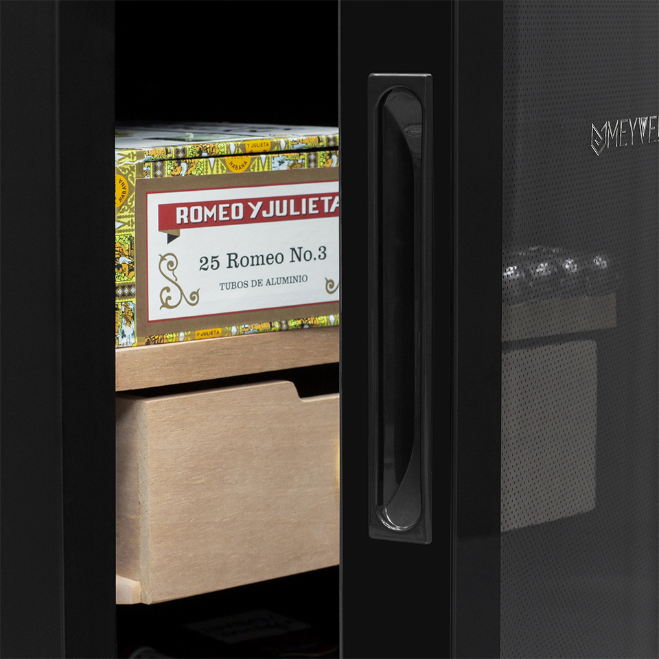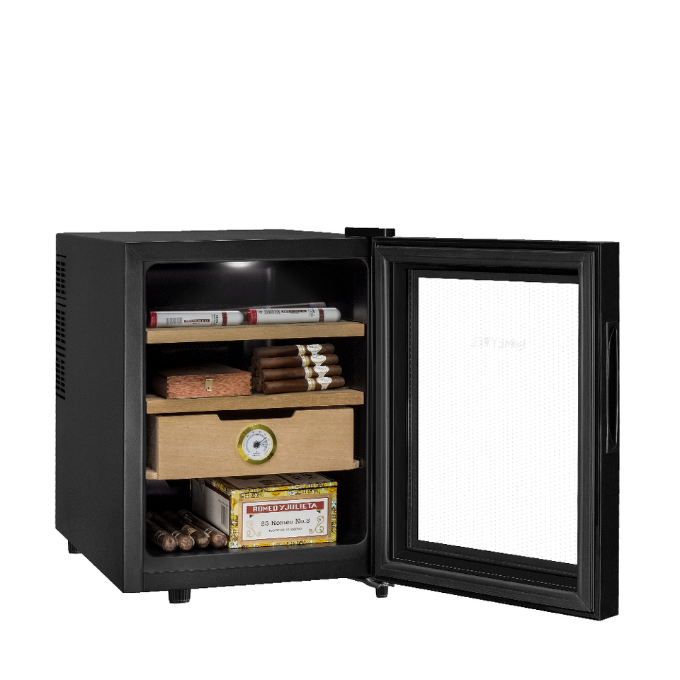 Если вы любитель сигар, то хорошо знаете, как важно хранить сигары в оптимальных условиях влажности. Хьюмидор Meyvel MC-33BT отлично подойдёт для этой задачи. Компактный размеры делают возможной установку, практически в любом желаемом Вами месте. При небольших размера объём составляет 33 литра и позволяет хранить большую коллекцию сигар. В комплекте идут 2 полки и выдвижной ящик, которые можно располагать на разных уровнях. Полки и ящик изготовлены из дерева испанского кедра - отлично подходят для поддержания оптимального уровня влажности и не портятся во время эксплуатации. Дверца с двойным стеклом имеет защиту от УФ лучей и не пропускает излишнего излучения.
