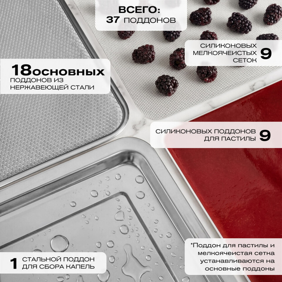 18 поддонов из нержавеющей стали для большинства продуктов;