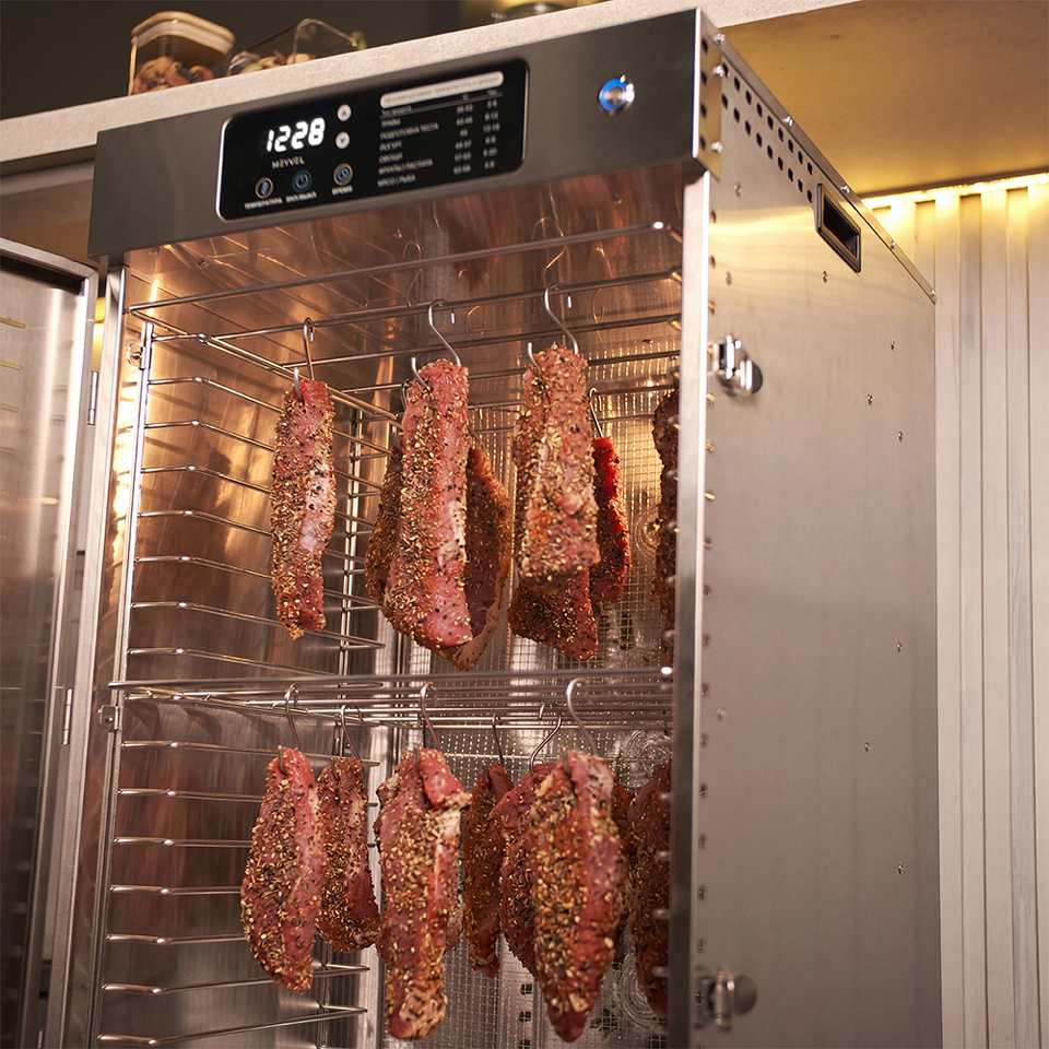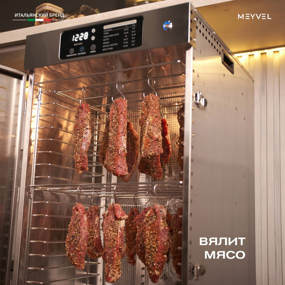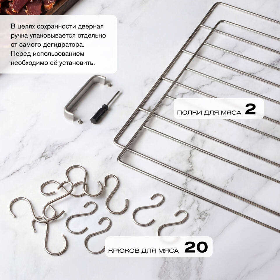 2 полки с 20 крюками для мяса для подвешивания и равномерной сушки.