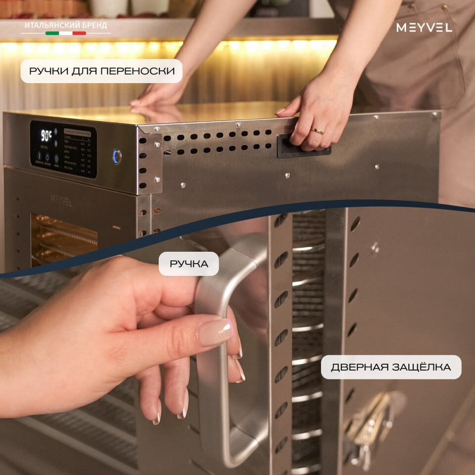 Такое оснащение превращает Meyvel MDH18-1S (Нержавеющая Сталь) (Inox) в универсальный инструмент: он одинаково хорошо справляется и с сушкой зелени, и с приготовлением деликатесов.