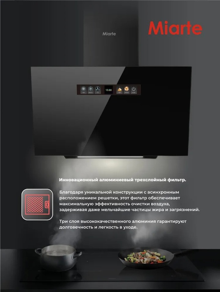 Вытяжка наклонная от бренда Miarte HD6021H03LGC 60см - это превосходный выбор для тех, кто ценит качество и стиль. Особенности: - С мощностью 213 Вт она обеспечивает быстрый отвод запахов и жира. - Производительность: 600 куб.м/ч делают ее работу наиболее эффективной. - Низкий уровень шума: 57 дБ позволяет использовать устройство с комфортом. - Жировой фильтр: Удобно очищается и заменяется, продлевая срок службы. - Светодиодная подсветка: Дополнительное освещение рабочего пространства. - Материал корпуса: Комбинация металла и стекла гарантирует долговечность и элегантный вид. Мощная кухонная стеклянная вытяжка с сенсорным управлением станет отличным дополнением к вашей кухне, поддерживая чистоту воздуха при готовке. Подходит для установки над газовой и электрической плитой. Приобретите ее сейчас и наслаждайтесь качественным товаром!