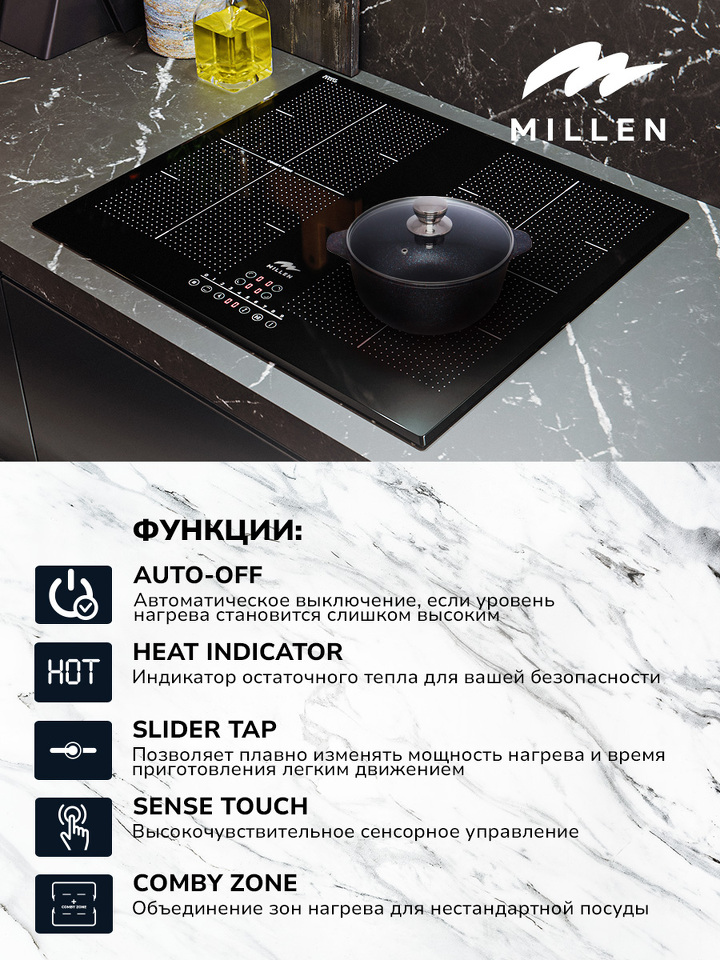 Индукционная варочная панель MIH 602 BL черного цвета со стеклокерамической поверхностью отличается качеством исполнения и удобством эксплуатации. Все конструкционные элементы изготовлены из надежных и экологически безопасных материалов, что положительно влияет на общий срок службы. Удобное управление всеми доступными функциями реализовано посредством сенсорных клавиш. Каждое нажатие на них дополнительно сопровождается звуковым сигналом.