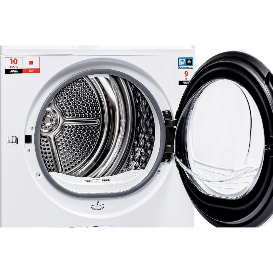 Среди особенностей модели — возможность выбора времени завершения программы. Конденсат отводится в дренаж. После сушки предусмотрено охлаждение вещей.