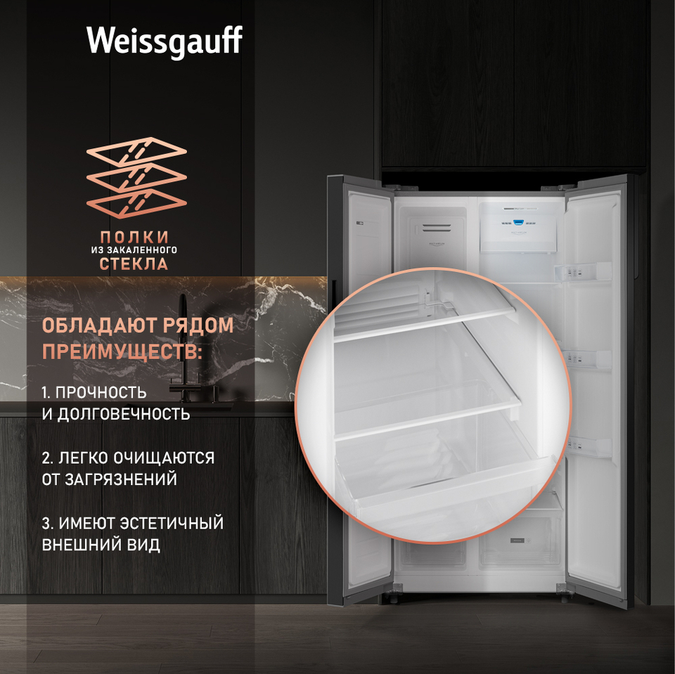 Полки, выполненные из закаленного стекла, это уверенность в их надежности и долговечности, ведь мы в Weissgauff знаем, как важно внимание к каждой детали, когда речь идет о действительно качественной бытовой технике!