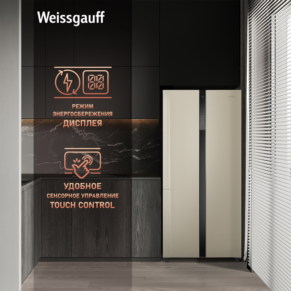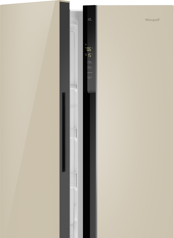Отдельностоящий холодильник Weissgauff, выполненный в современном европейском дизайне Side-by-Side в закаленном стекле бежевого цвета, обладающий полной системой размораживания Full No Frost и полностью электронным управлением - это соотношение фантастической вместительности, безупречной эргономики внутреннего пространства, технологического совершенства и великолепного дизайна!