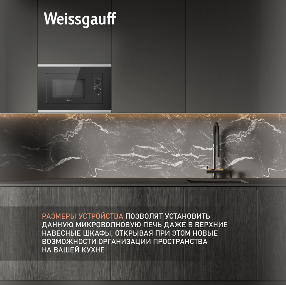 Встраиваемая микроволновая печь Weissgauff с объемом 20 литров, выполненная в черном закаленном стекле со вставками из нержавеющей стали, равномерно разогревает еду при помощи поворотного стола, а также оснащена грилем с возможностью работы в комбинированном режиме!