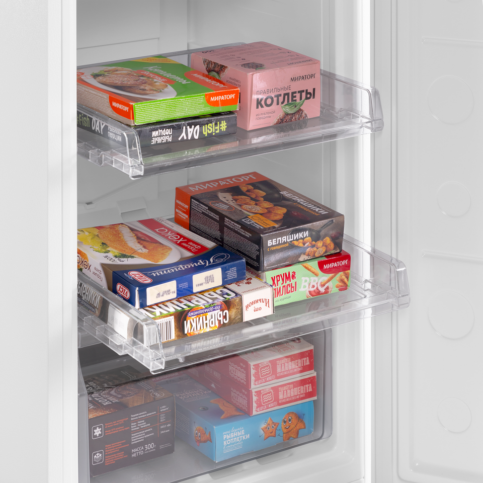Система охлаждения морозильной камеры - «No Frost». Холодный сухой воздух равномерно распределяется при помощи вентилятора по всей камере. Благодаря этому на продуктах и внутренних поверхностях морозилки не образовывается иней. Теперь вам никогда не придется размораживать холодильник.