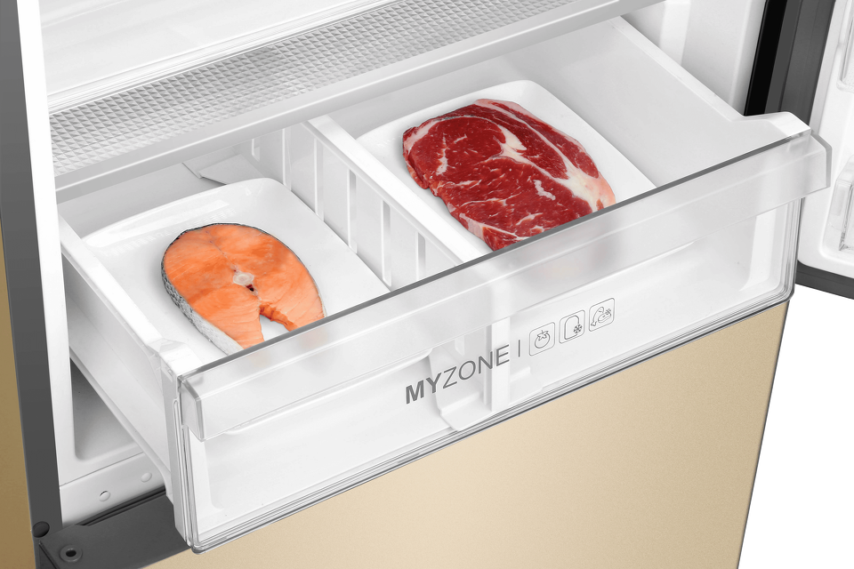Двухкамерный холодильник нового поколения с функцией Total No Frost — нет наледи в отделениях, никакого ручного размораживания. Новое поколение имеет увеличенный полезный объем как холодильного, так и морозильного отделения. Оптимальные условия для хранения морепродуктов, охлажденного мяса, сыров и молочных продуктов благодаря нулевой зоне MyZone. Автоконтроль уровня влажности в ящике для овощей и фруктов — мембранная технология HCS. Чтобы продукты хранились дольше и не было неприятных запахов, предусмотрена антибактериальная обработка воздуха. Складная стеклянная полка и складная винная полка в холодильном отделении обеспечивают максимальное удобство и вариативность хранения. Дополнительным преимуществом является возможность управлять холодильником через приложение по Wi-Fi: настройка температуры в холодильном и морозильном отделении, выбор режима в нулевой зоне, активация режимов Супер-охлаждение и Супер-заморозка, универсальный таймер охлаждения напитков и приготовления льда. Холодильник комплектации Standard.