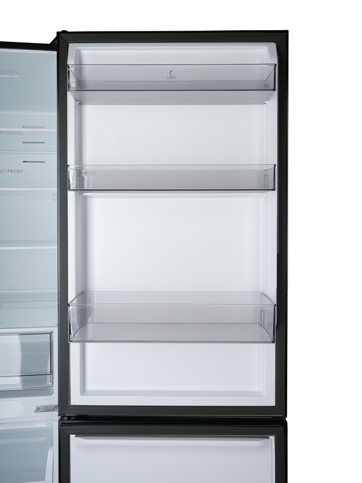 LED-лампы обеспечивают яркий свет, помогая вам быстро найти все, что нужно. Электронная панель управления делает настройку параметров интуитивно понятной. А перенавешиваемые двери делают холодильник LEX LKB185 универсальным для любой кухни.