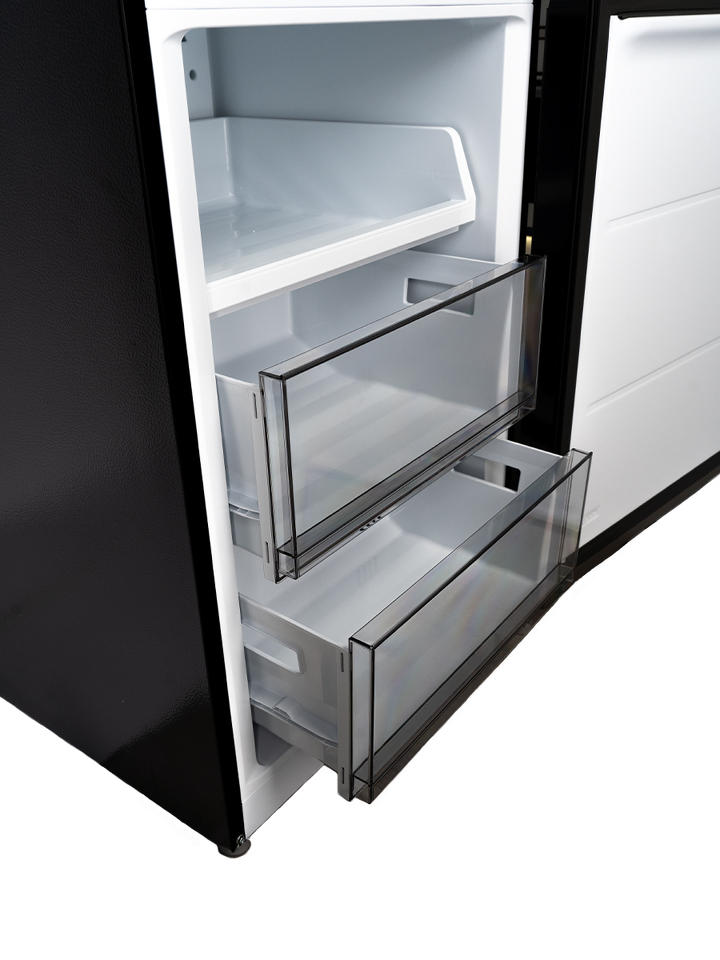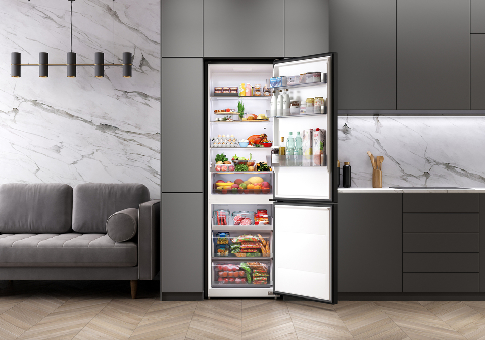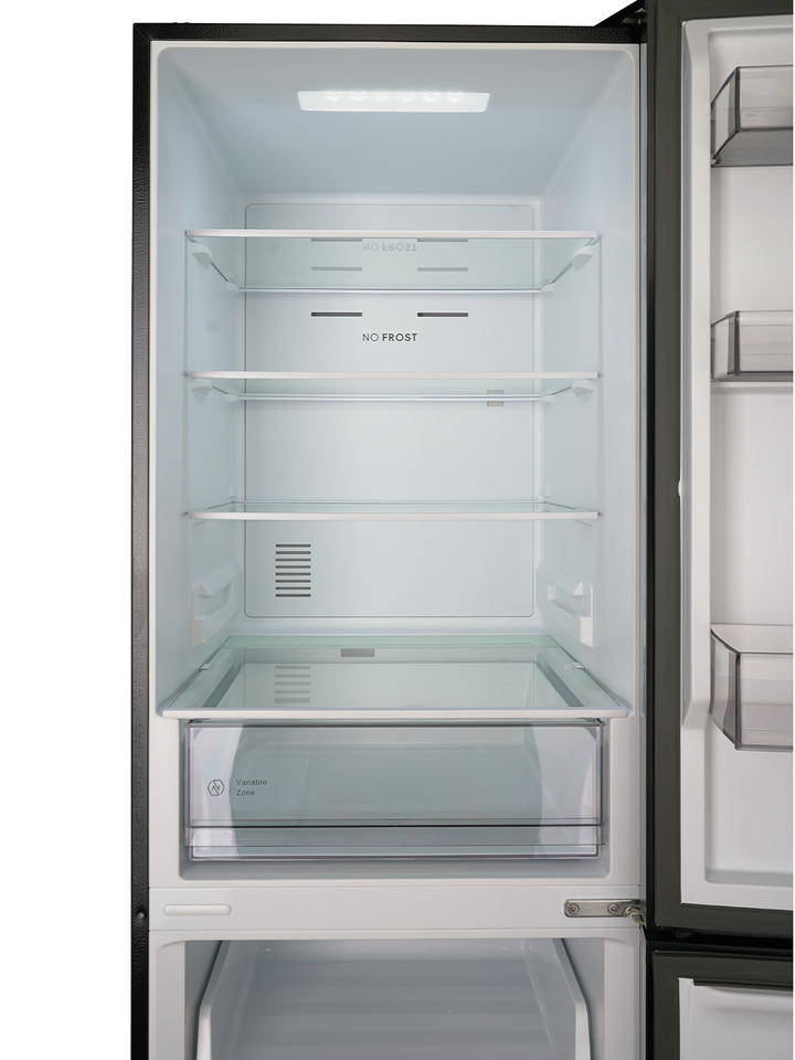 Два отделения с полезным объемом 409 литров дают возможность хранить все блюда и напитки на удобном уровне. Внутреннее пространство холодильника организовано максимально эффективно благодаря регулируемым полкам.