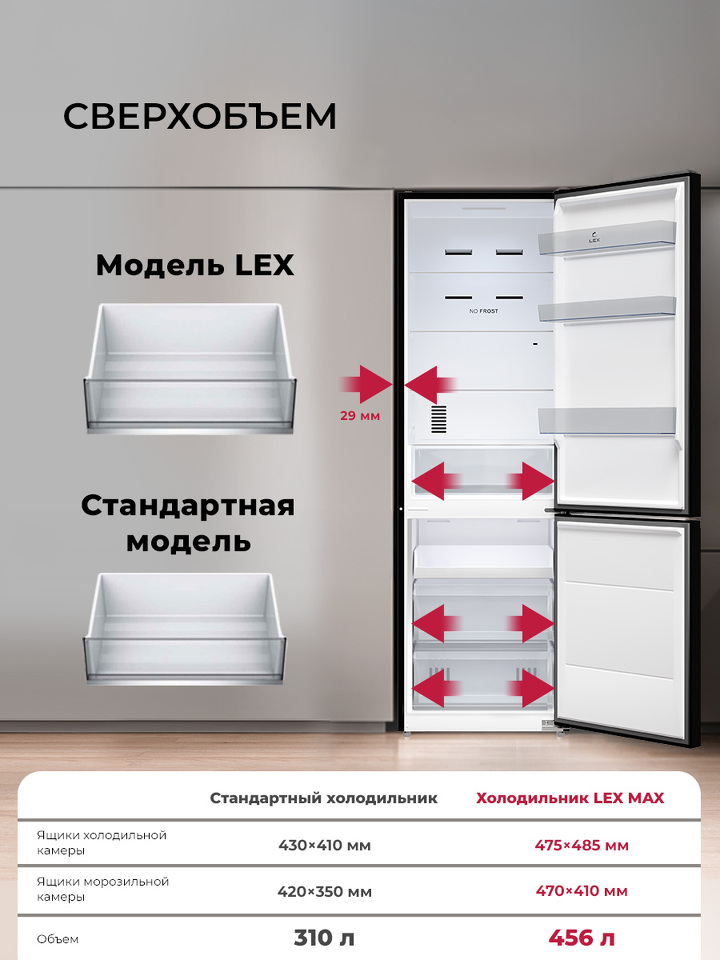 Холодильник с нижней морозилкой Lex LKB201BLGIDMax Wind - холодильник отдельностоящий