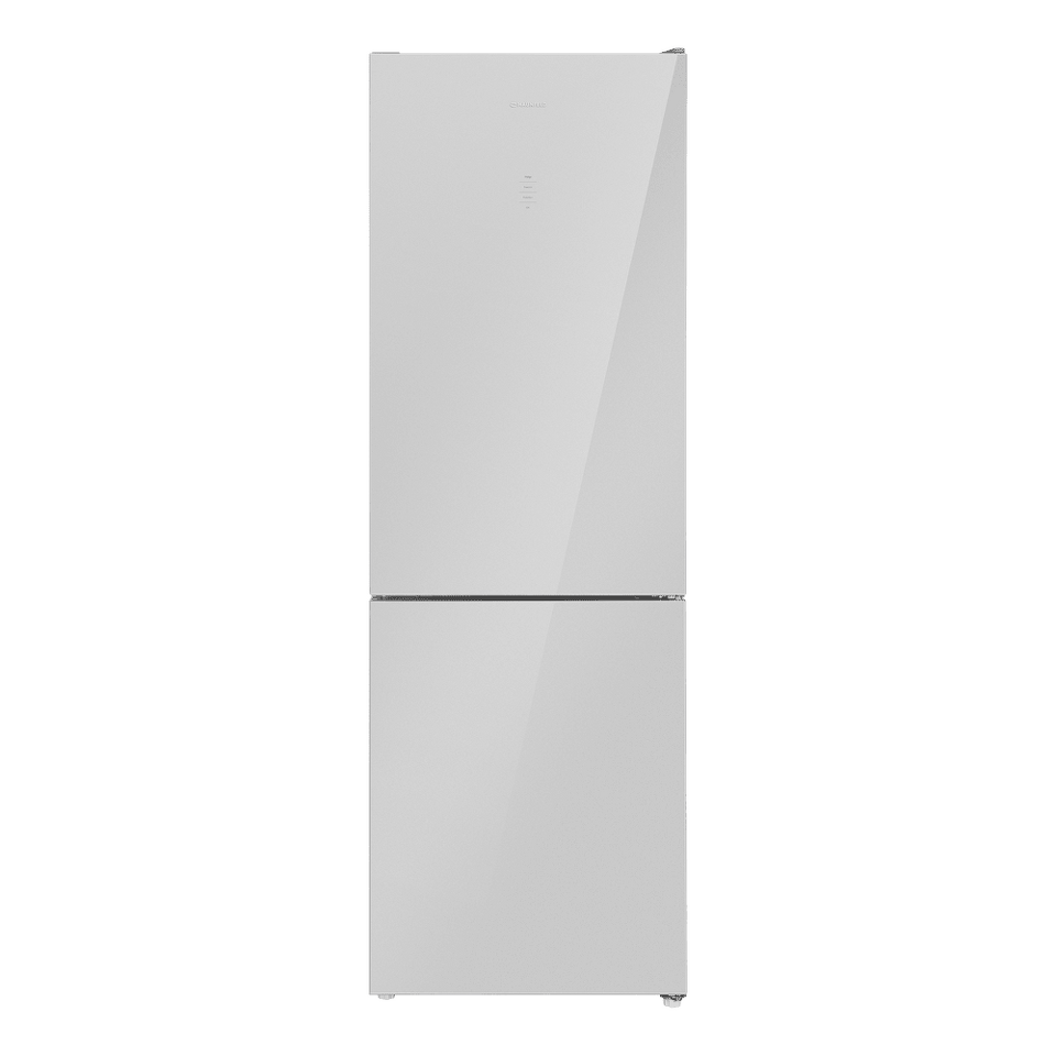Современный двухкамерный холодильник NO FROST шириной 60 см с инверторным компрессором, многопоточным охлаждением, сенсорной панелью управления. Фасад выполнен из закаленного стекла.