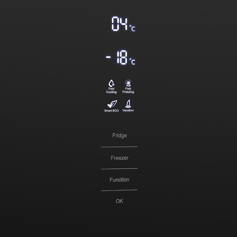 Современный двухкамерный холодильник TOTAL NO FROST шириной 60 см с инверторным компрессором, сенсорной панелью управления. Фасад выполнен из закаленного стекла.