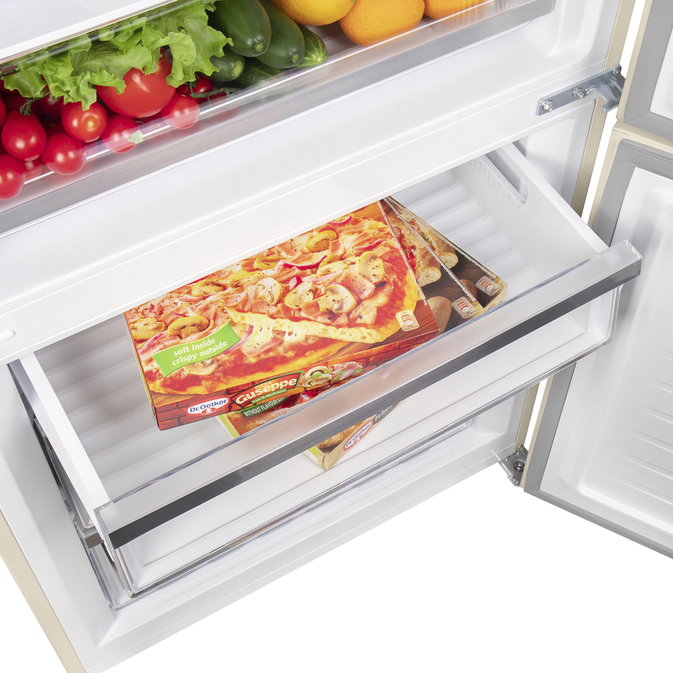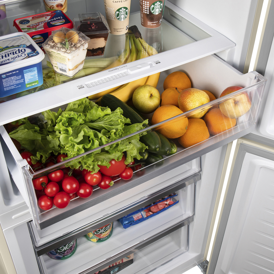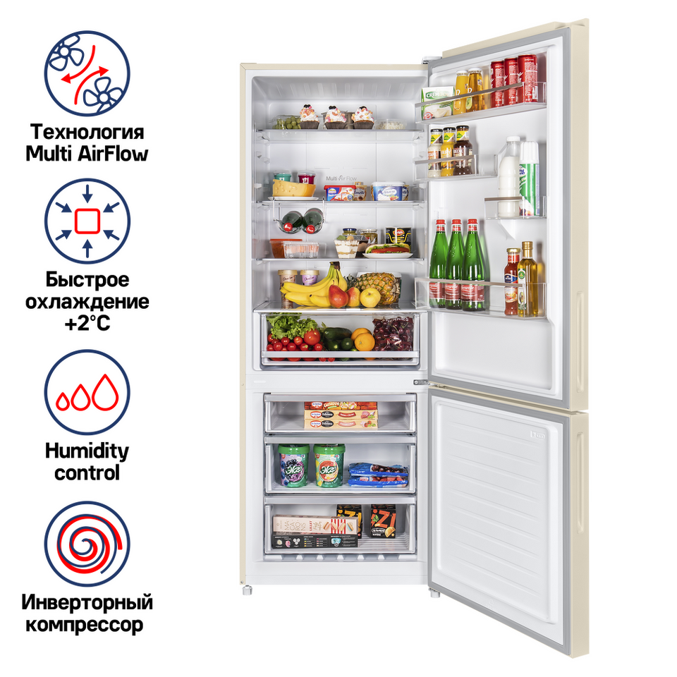 Система охлаждения всего холодильника - «Total No Frost». Это инновационная разработка, при которой холодный сухой воздух равномерно распределяется при помощи вентилятора по всей камере. Благодаря этому на продуктах и внутренних поверхностях прибора не образовывается иней. Теперь вам никогда не придется размораживать холодильник.