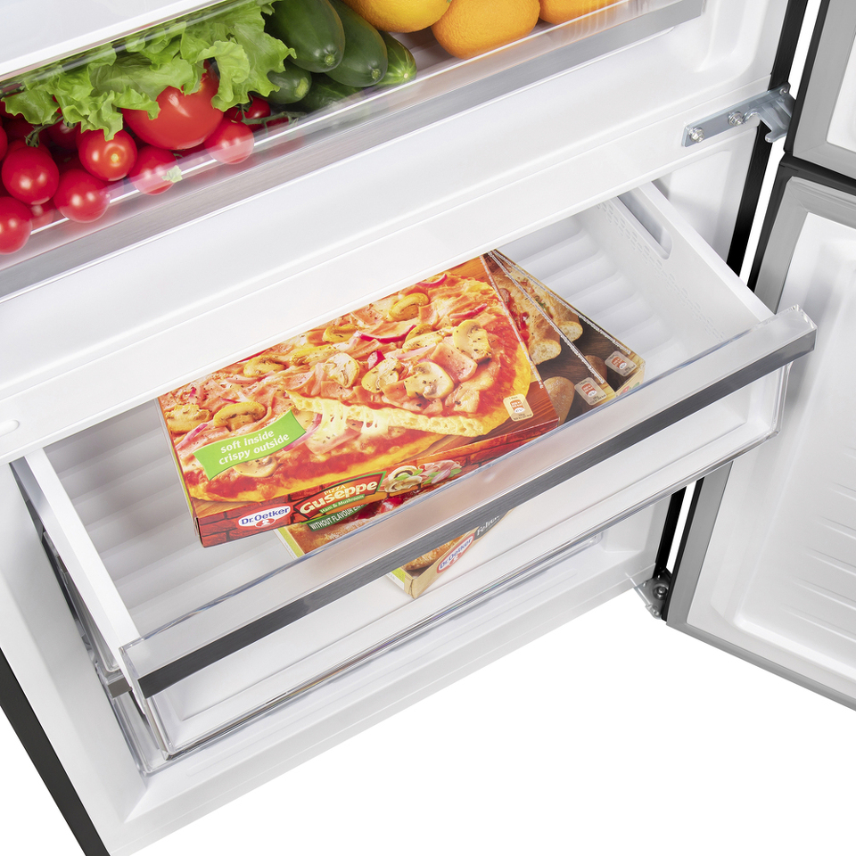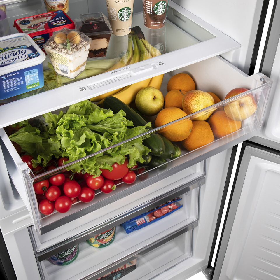 Функция Humidity control позволяет регулировать уровень влажности в зоне свежести, благодаря чему овощи и фрукты дольше хранятся.