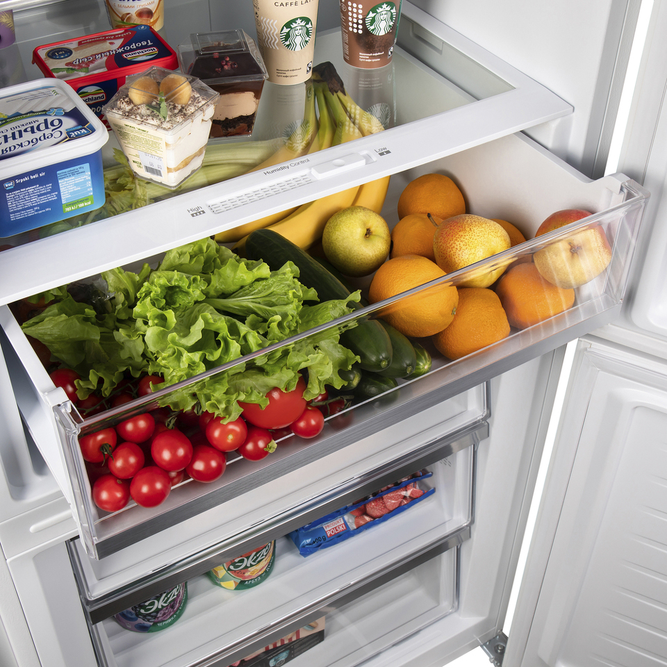 Система охлаждения всего холодильника - «Total No Frost». Это инновационная разработка, при которой холодный сухой воздух равномерно распределяется при помощи вентилятора по всей камере. Благодаря этому на продуктах и внутренних поверхностях прибора не образовывается иней. Теперь вам никогда не придется размораживать холодильник.