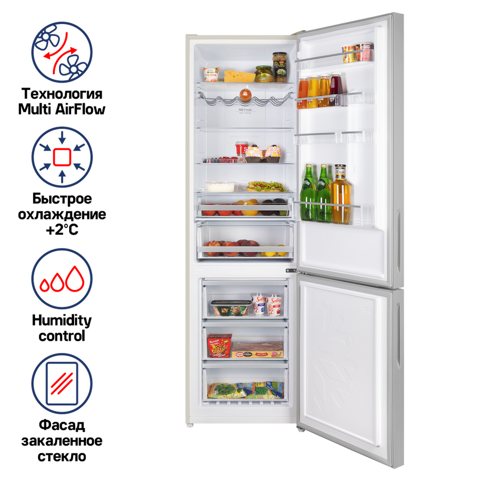 Больше нет необходимости размораживать холодильник, так как наледь не образуется в холодильниках MAUNFELD с системой автоматического оттаивания (NoFrost). Главные преимущества системы NoFrost в морозильной камере: замороженные продукты больше не склеиваются, не уменьшается внутреннее пространство из-за образования наледи, а ящики всегда так же легко и удобно открывать, как при первом использовании камеры.