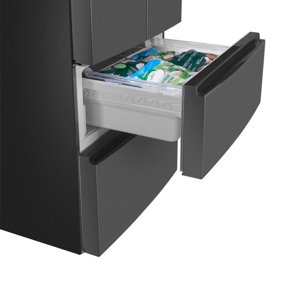 Холодильники с «французской дверцей» отличаются большой вместительностью и оригинальным дизайном. Выдвижные ящики морозильника превосходно удерживают холод и позволяют лучше разглядеть содержимое, чем распашные дверцы.