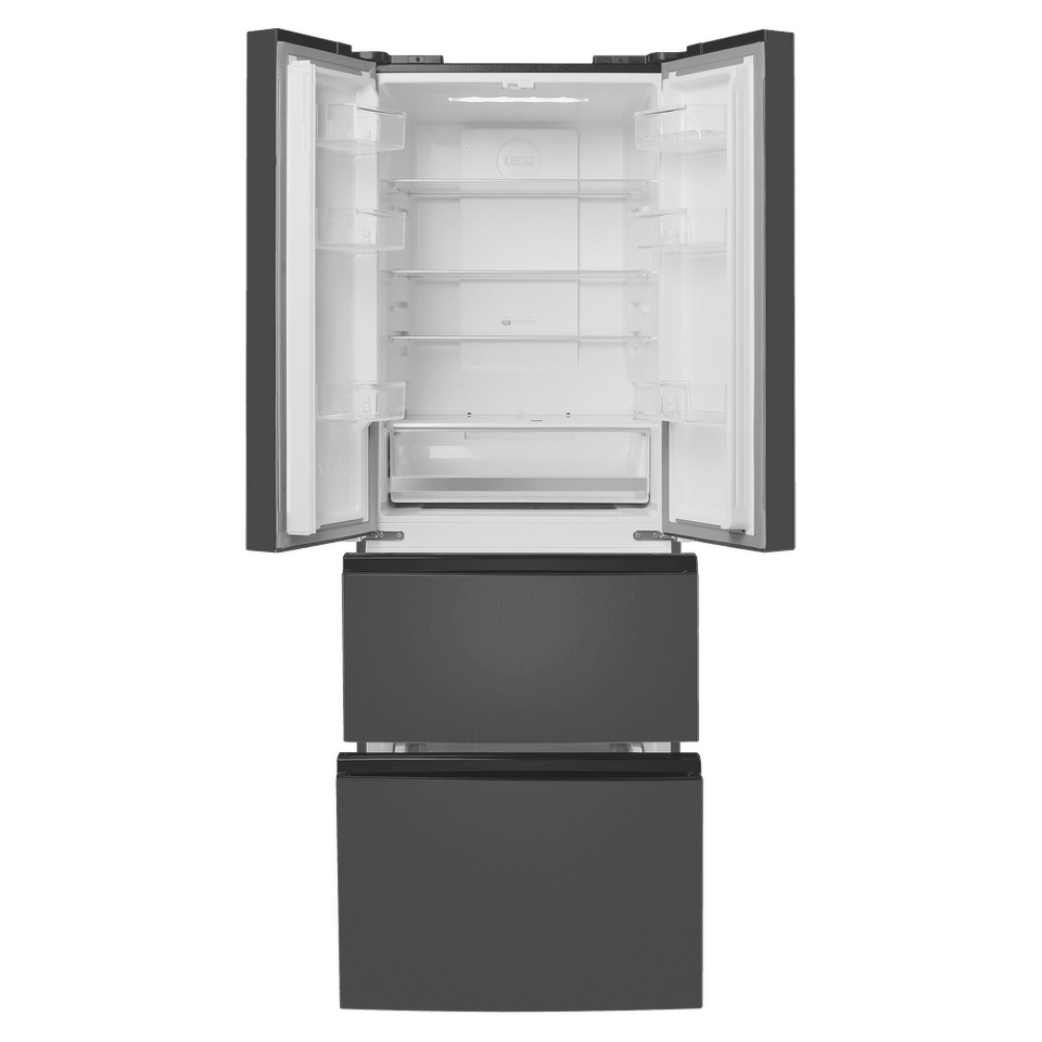 Вместительный холодильник French Door шириной 65 см с инверторным компрессором и сенсорным управлением с дисплеем не требует ручной разморозки благодаря технологии TOTAL NO FROST. Фасад выполнен из металла.