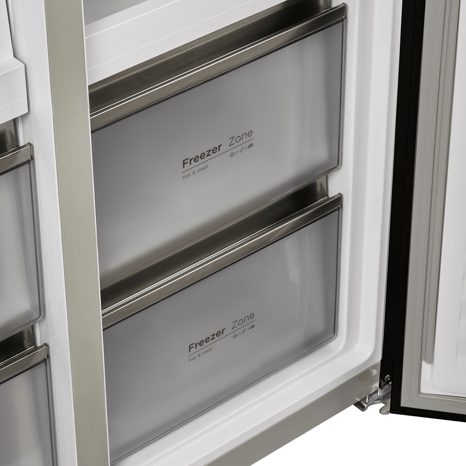 Регулируемая влажность и температура около 0 градусов — специальная зона для качественного хранения мяса, рыбы, морепродуктов, сыров и молочных продуктов.