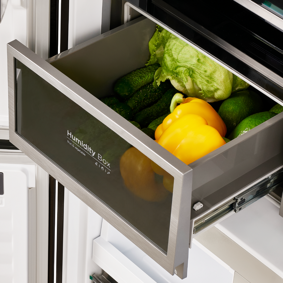 Оптимальные условия для разных продуктов в контейнерах с автоматической регулировкой влажности — Dry Zone и Humidity. Мясо или рыба, овощи или фрукты — всё будет бережно сохранено.