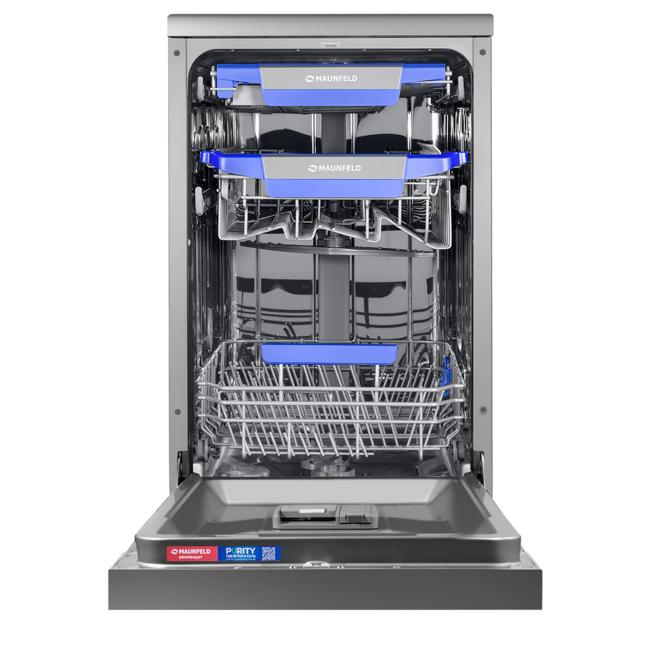 Посудомоечная машина MAUNFELD MWF45331S Inverter с автооткрыванием дверцы. На большом и широком светодиодном дисплее можно с комфортом просматривать всю информацию о посудомоечной машине.