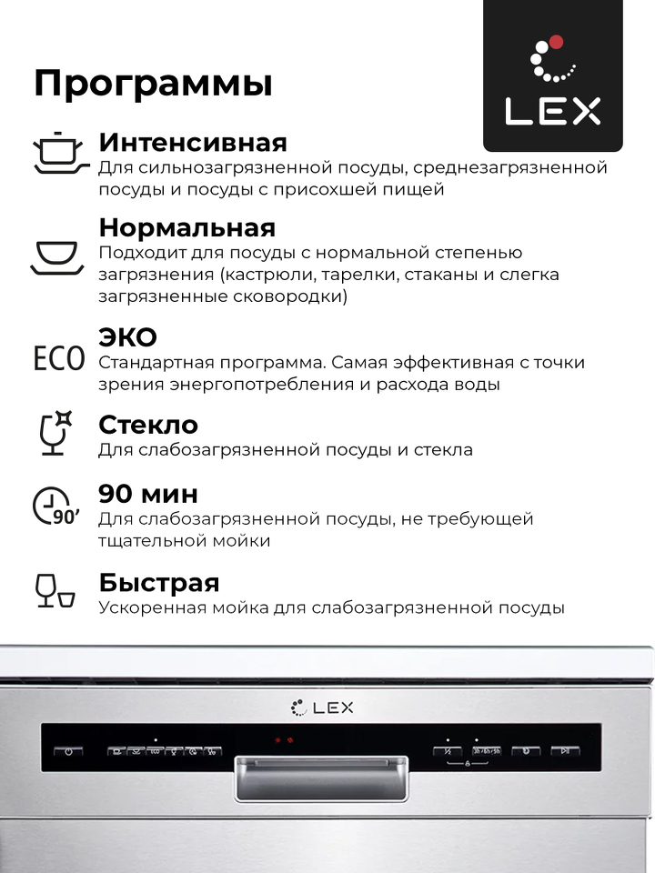 Фото Посудомоечная машина 60см Lex DW 6062 IX посудомоечная машина