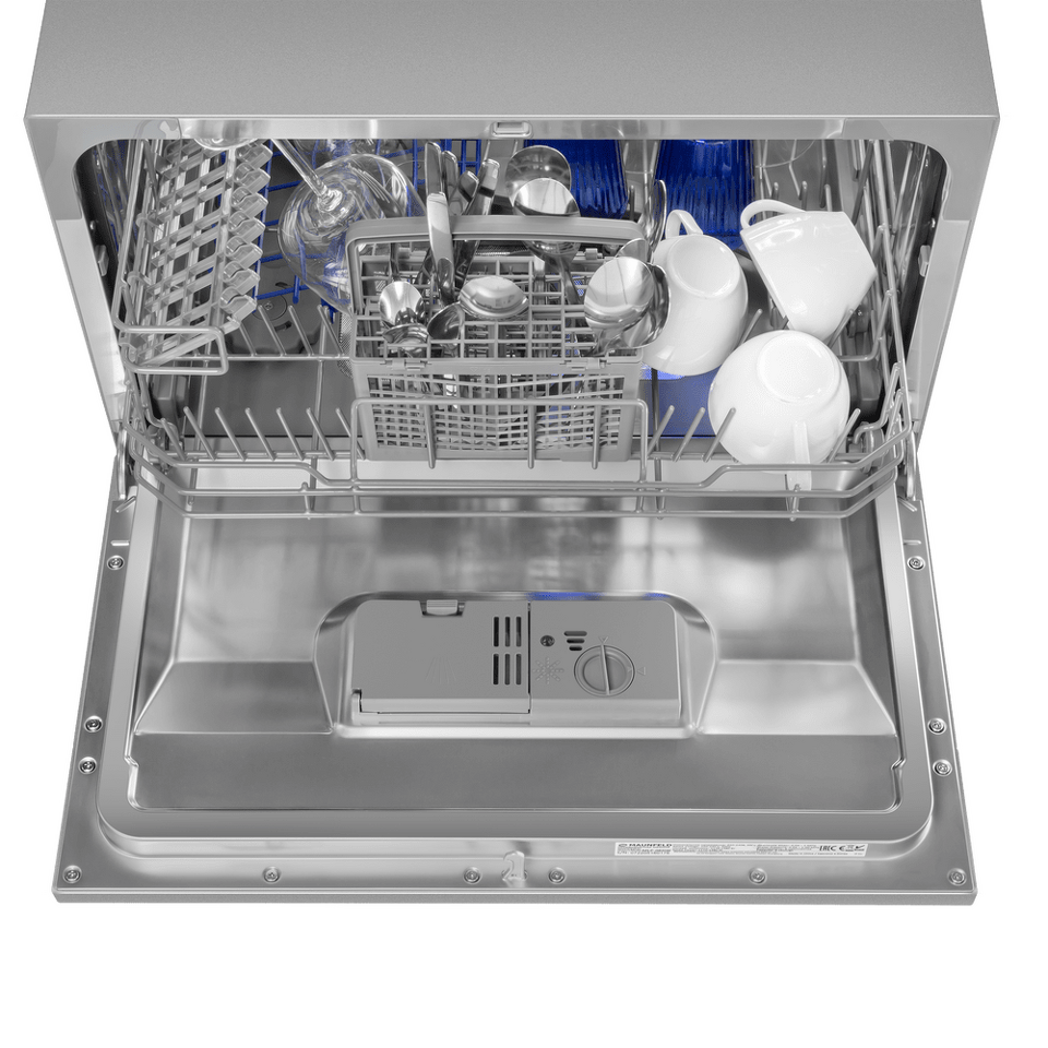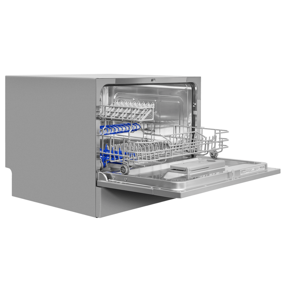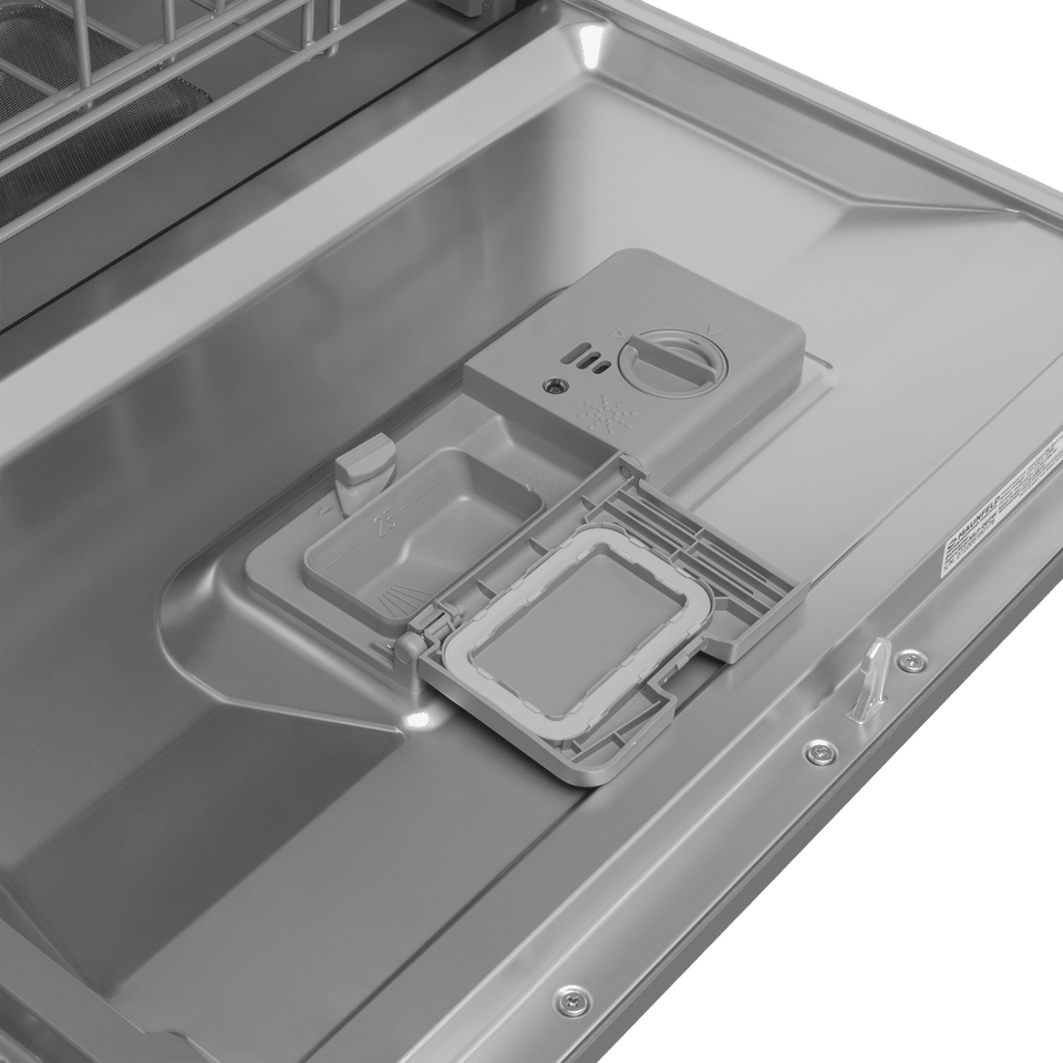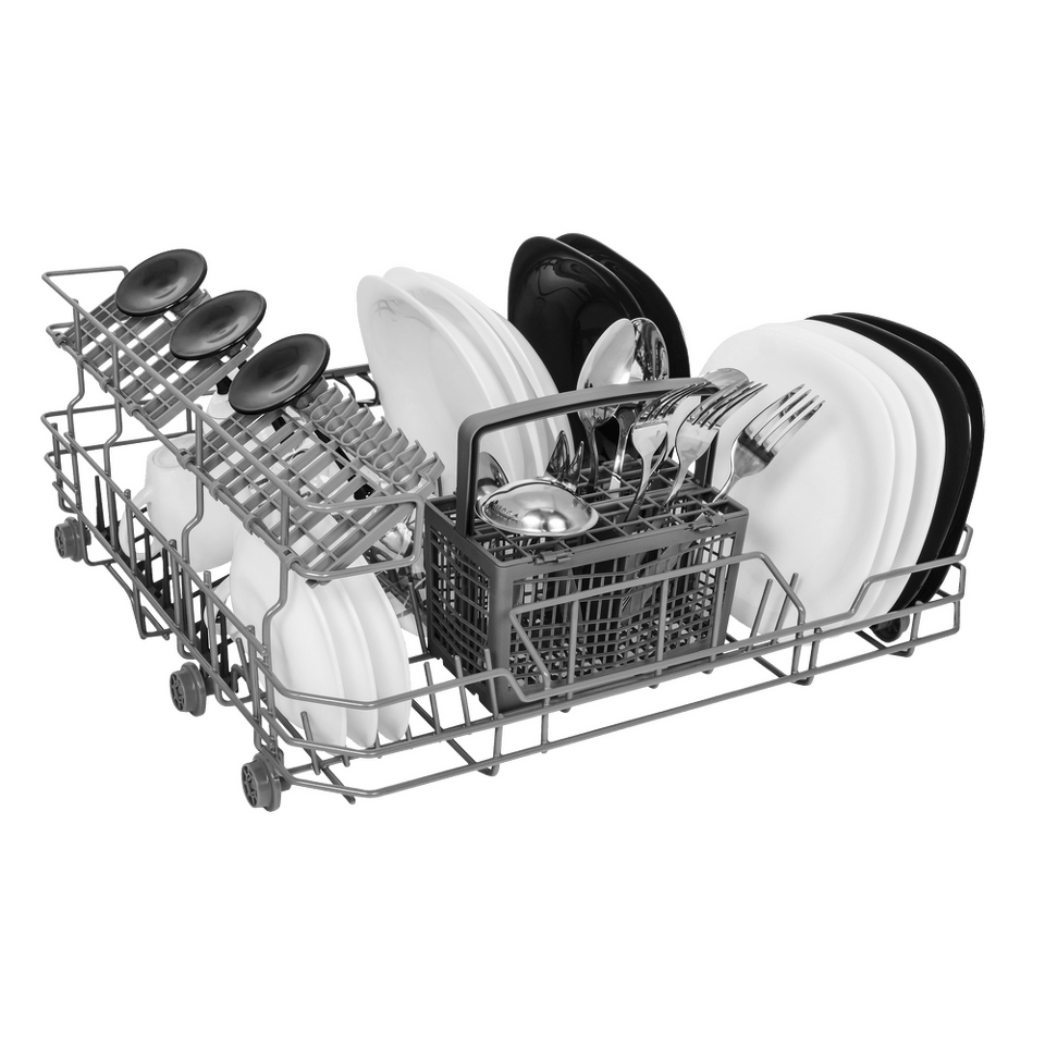 Электронное управление с дисплеем расположено в торце загрузочной дверцы. Функционал данной модели позволяет вам выбрать программу мойки, включить половинную загрузку, выставить время отсрочки старта (1-24 часов).
