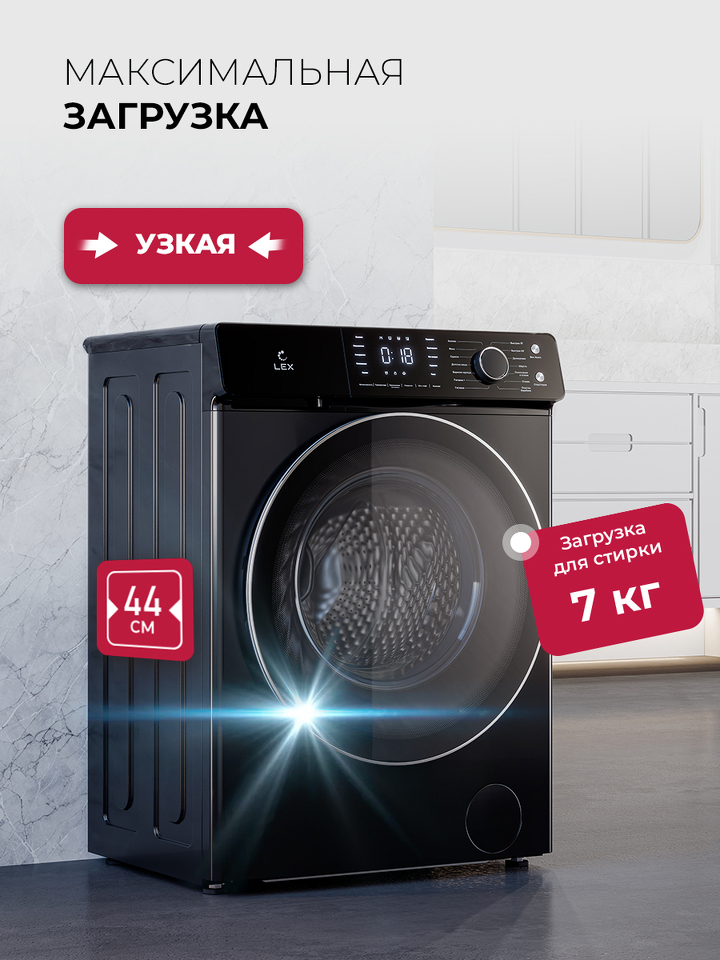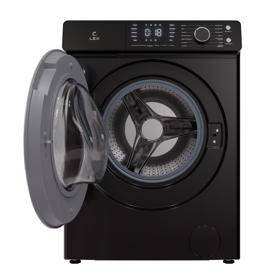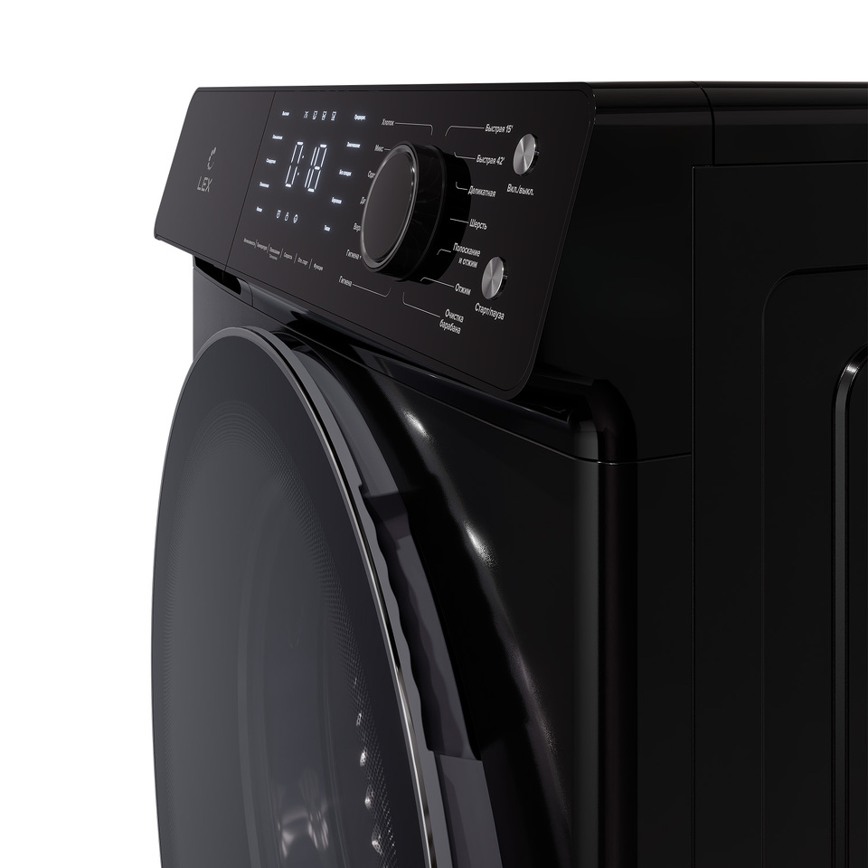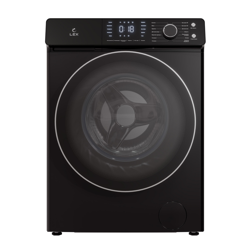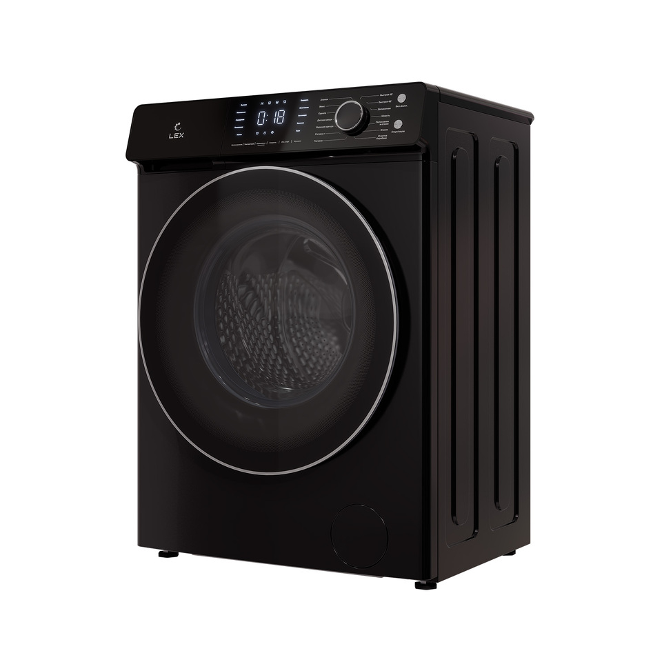 Стиральная машина с фронтальной загрузкой, 7 кг, черный корпус, класс энергопотребления A+++, максимальная скорость вращения 1200 об/мин, инверторный двигатель DD, большой сенсорный дисплей, полностью черная панель управления, черная ручка, большая черная двухслойная дверца с крышкой из закаленного стекла, цельная верхняя крышка