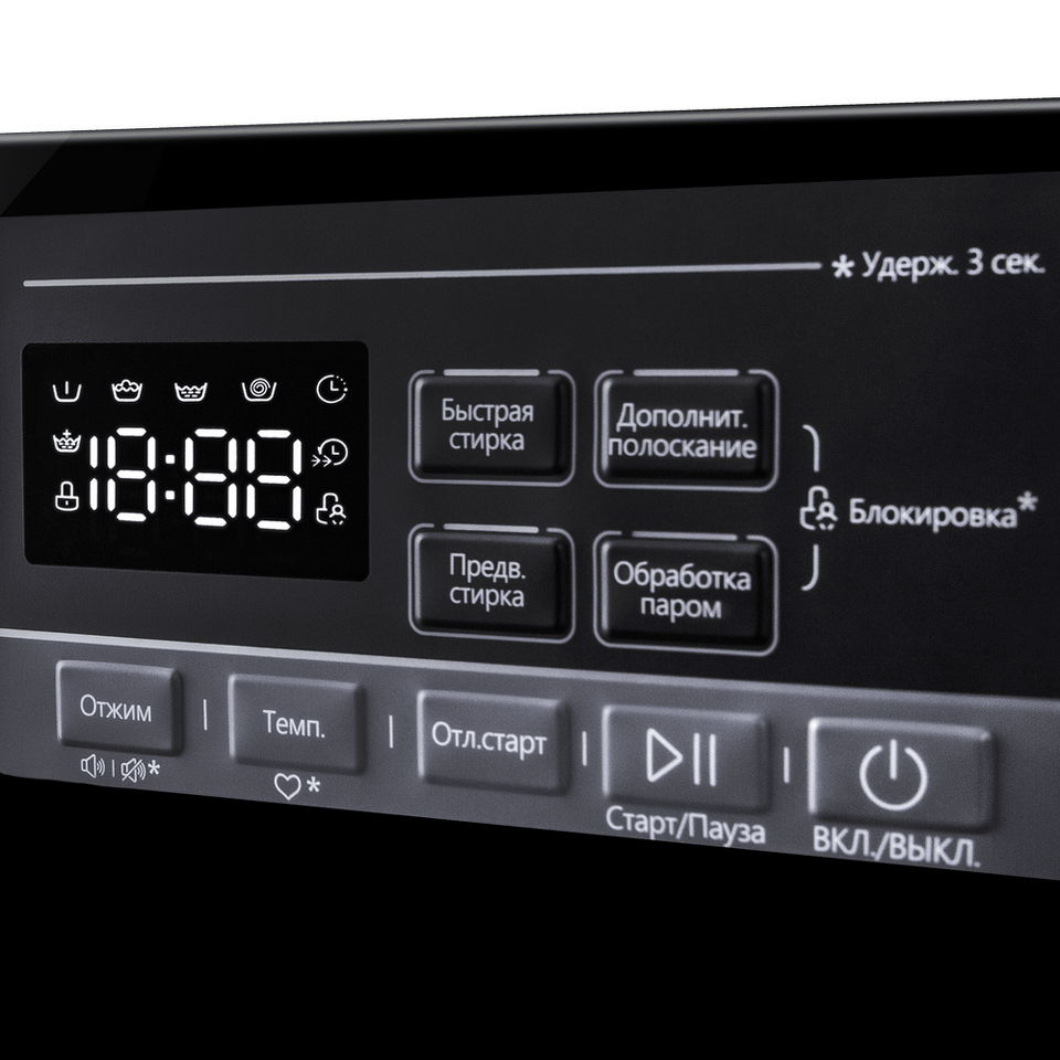 Функция обработки паром — разгладит складки на белье и нейтрализует неприятные запахи и разрушит вредоносные аллергены.