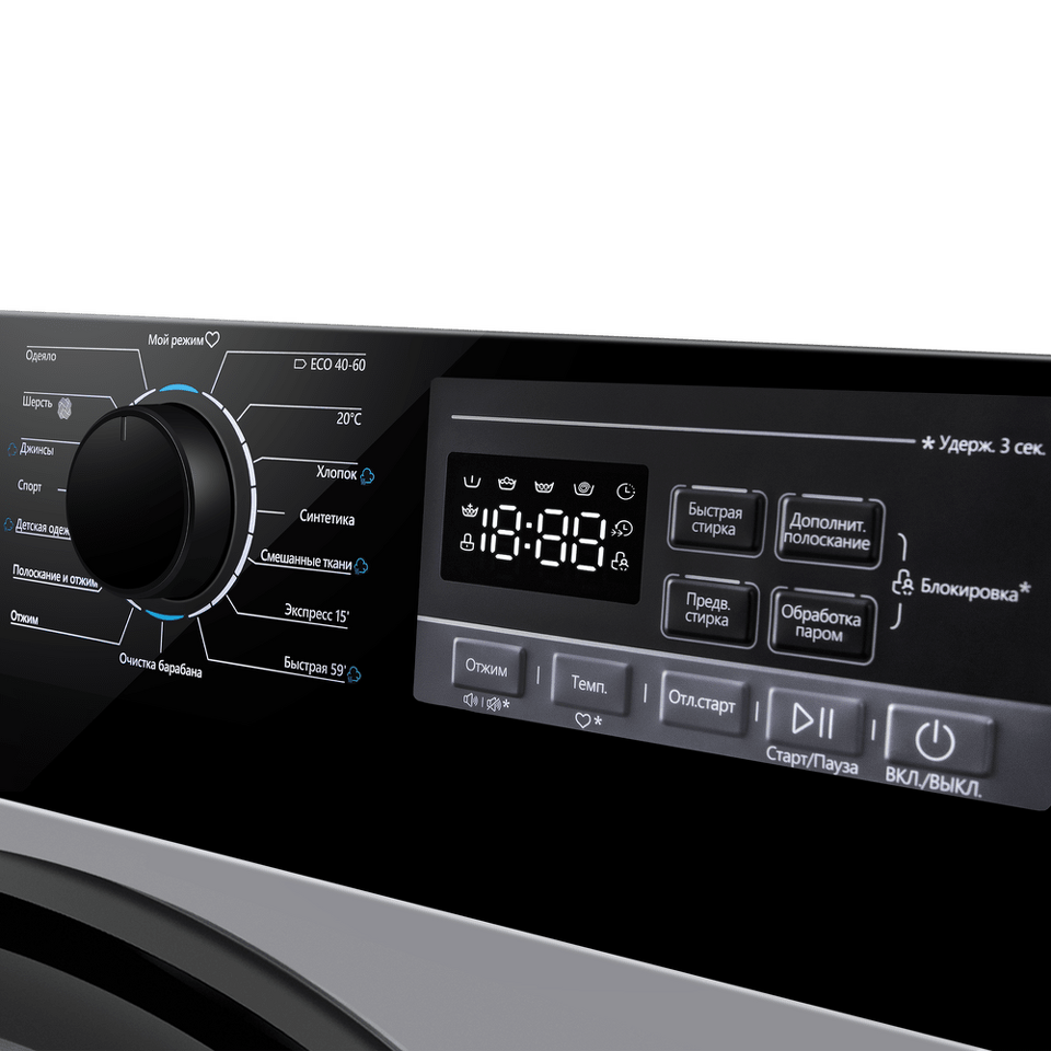 Сохраните часто используемые параметры в программе «Мой режим» - задайте температуру, скорость оборотов при отжиме и дополнительные функции. Теперь ваша уникальная программа будет доступна в верхнем положении регулятора, и вы сможете одним движением включить ее.