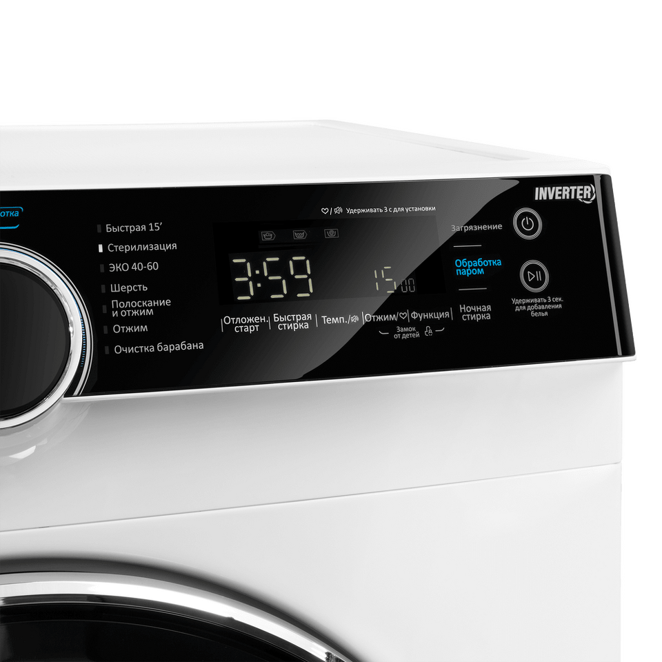 Тихий инверторный двигатель - особая технология задействует электромагнитное поле для вращения барабана. Это снижает уровень шума до 66 дБ , уменьшает энергопотребление и износ. Стиральная машина стала тише и долговечнее.