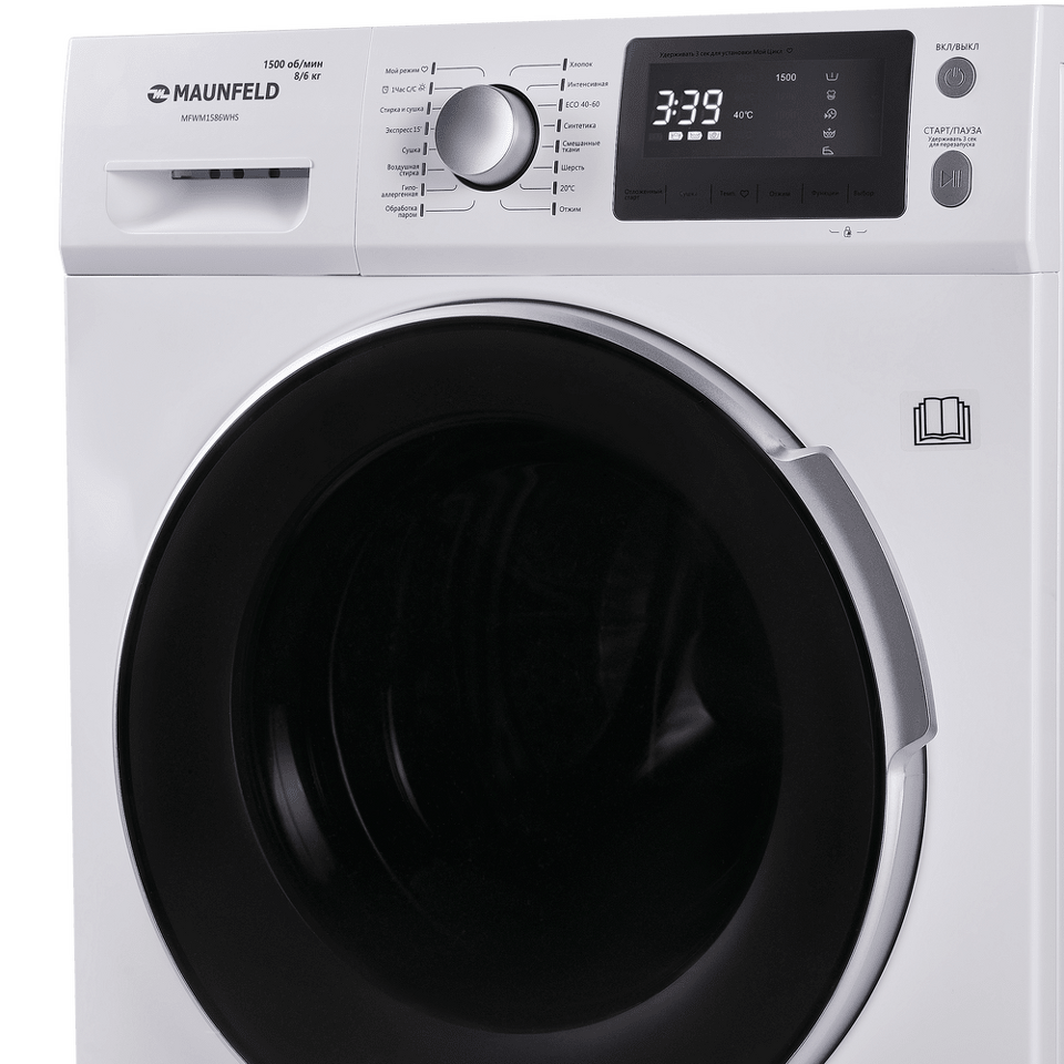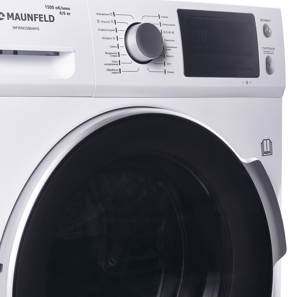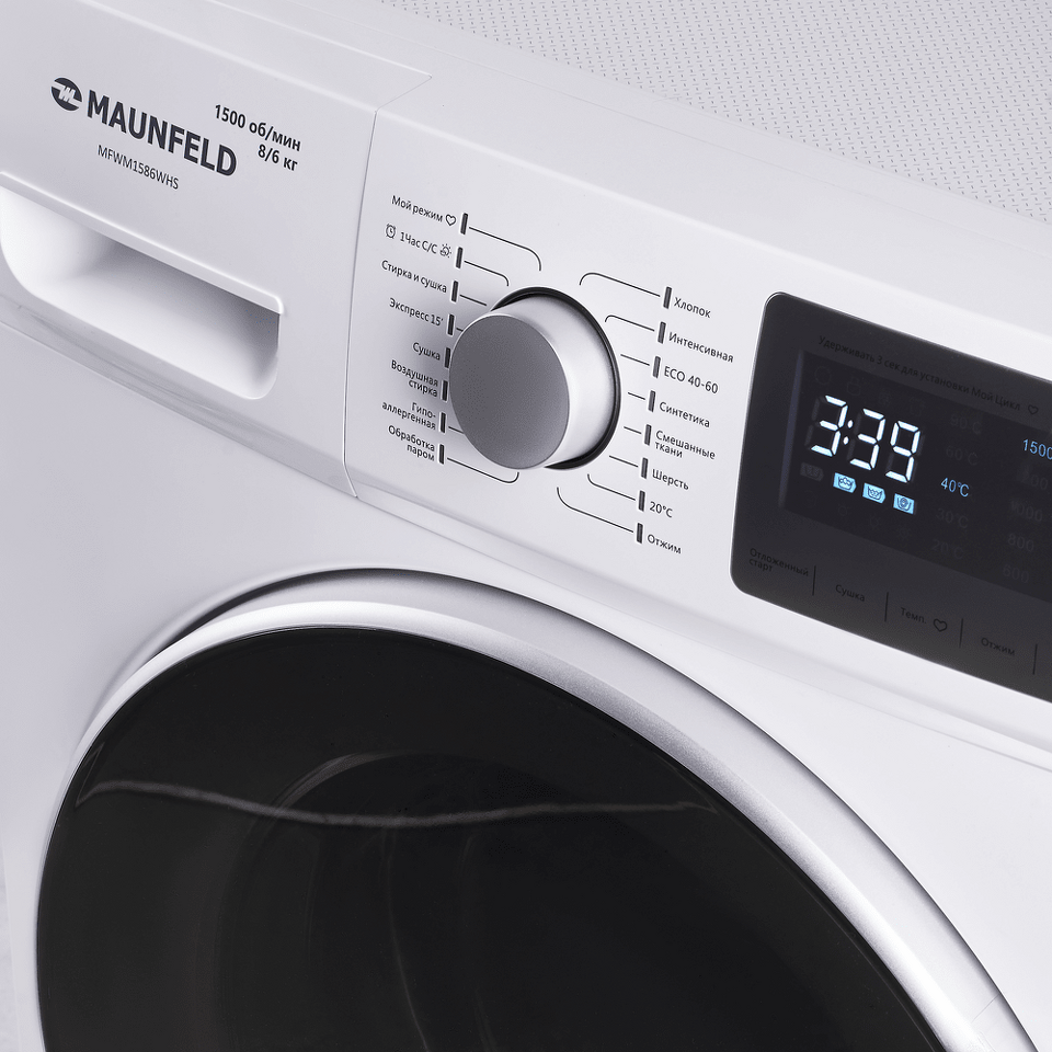 Электронное управление с LCD дисплеем позволяет с легкостью включить один из 15 режимов стирки.