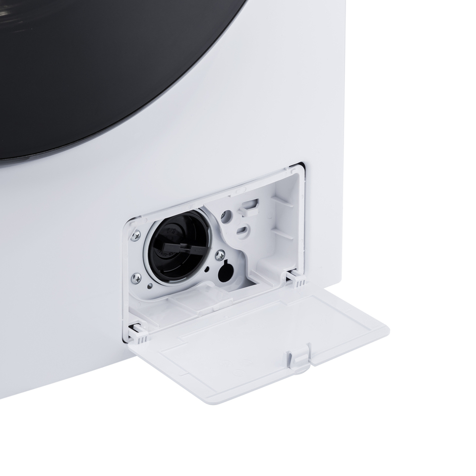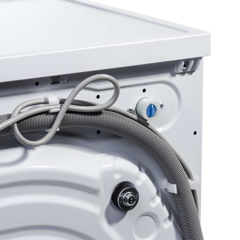 Отдельностоящая стиральная машина с инверторным мотором мощностью 1900 Вт. Белый цвет корпуса идеально сочетается с черным тонированным стеклом загрузочного люка и дисплея. Бак сделан из экокарбона, а барабан – из нержавеющей стали.