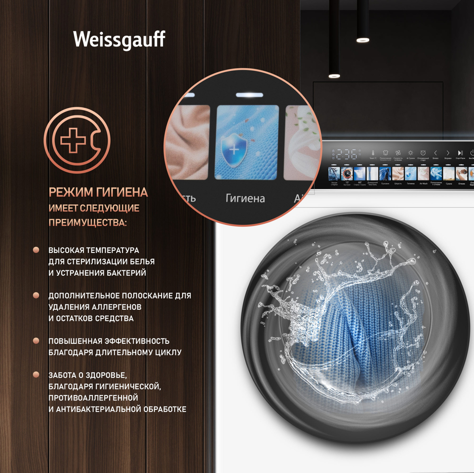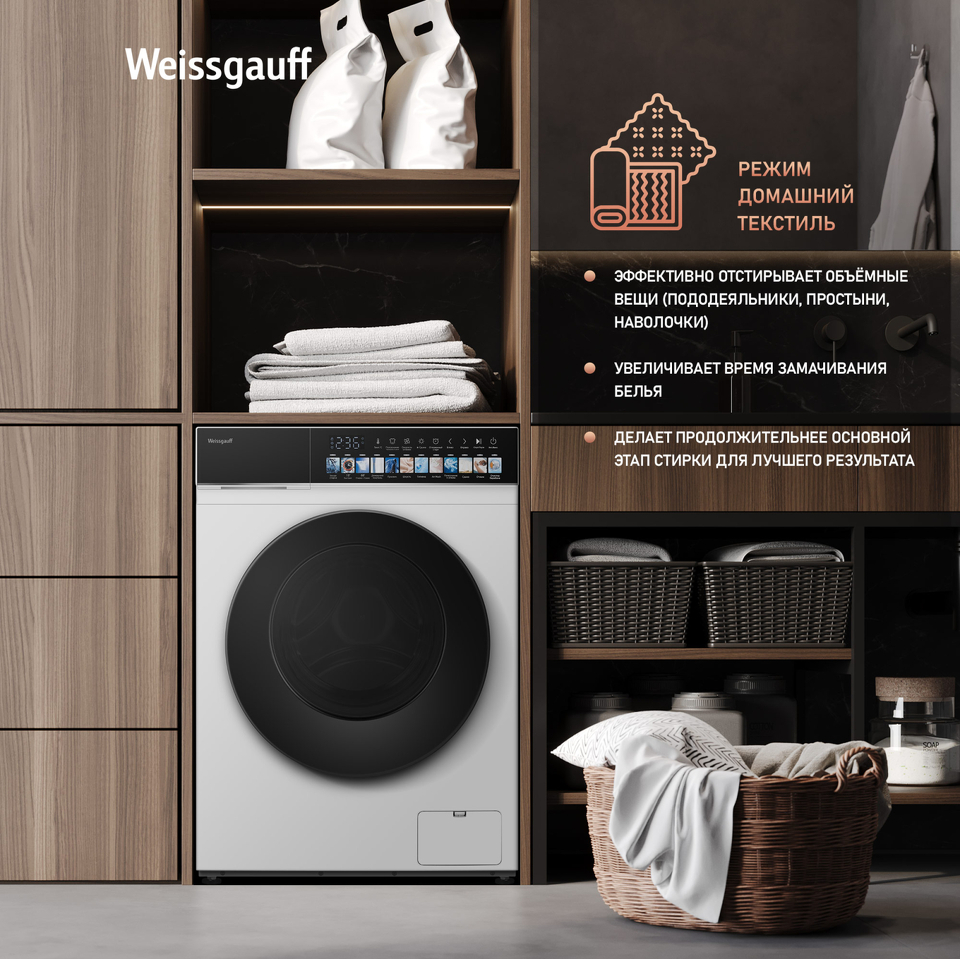Отдельностоящая стиральная машина Weissgauff с функцией сушки и инверторным двигателем работающий по особой технологии BLDC, имеющая показатели загрузки до 10,5 кг белья при стирке и до 7 кг белья при сушке, скорость отжима до 1200 оборотов в минуту, а также цветной дисплей SMART SCREEN - это одна из наиболее передовых моделей Weissgauff в категории стиральных машин!