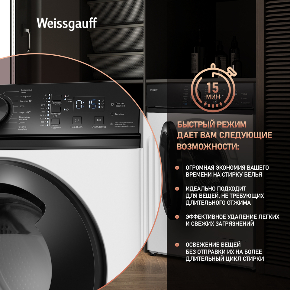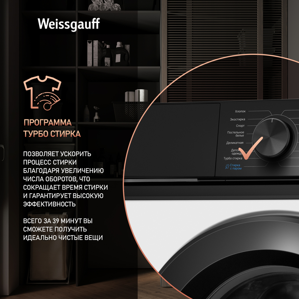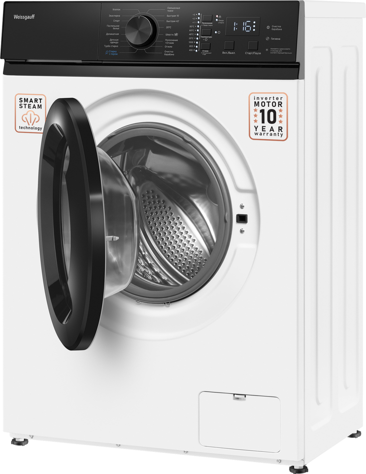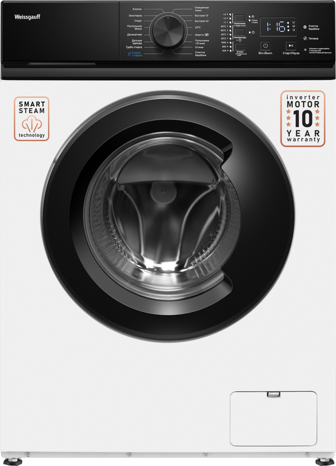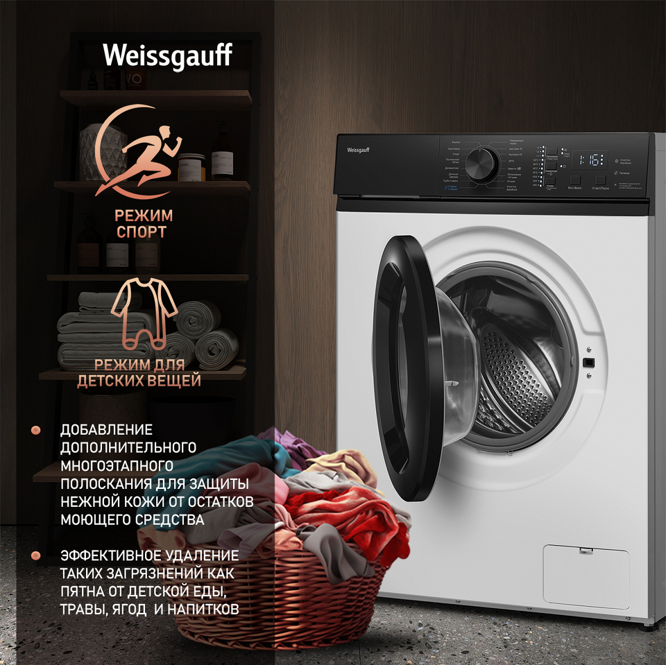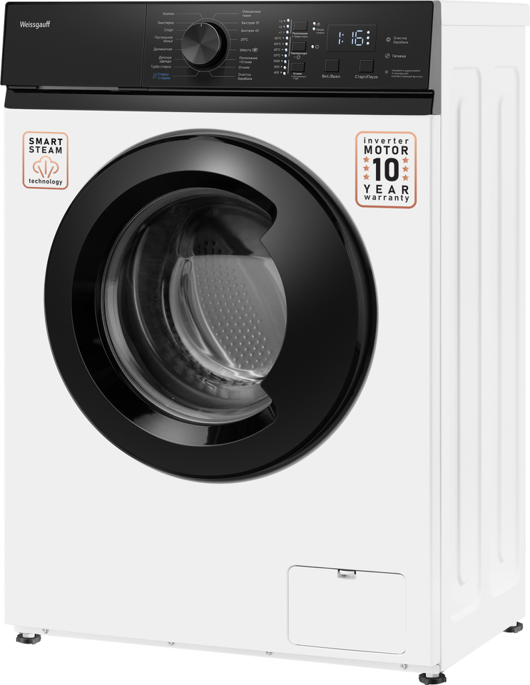 Отдельностоящая стиральная машина Weissgauff, оснащенная современным инверторным двигателем, функцией пара, имеющая показатели загрузки до 6 кг белья и скорости отжима до 1000 оборотов в минуту - это настоящее воплощение основного принципа Weissgauff "Качество, доступное каждому"!