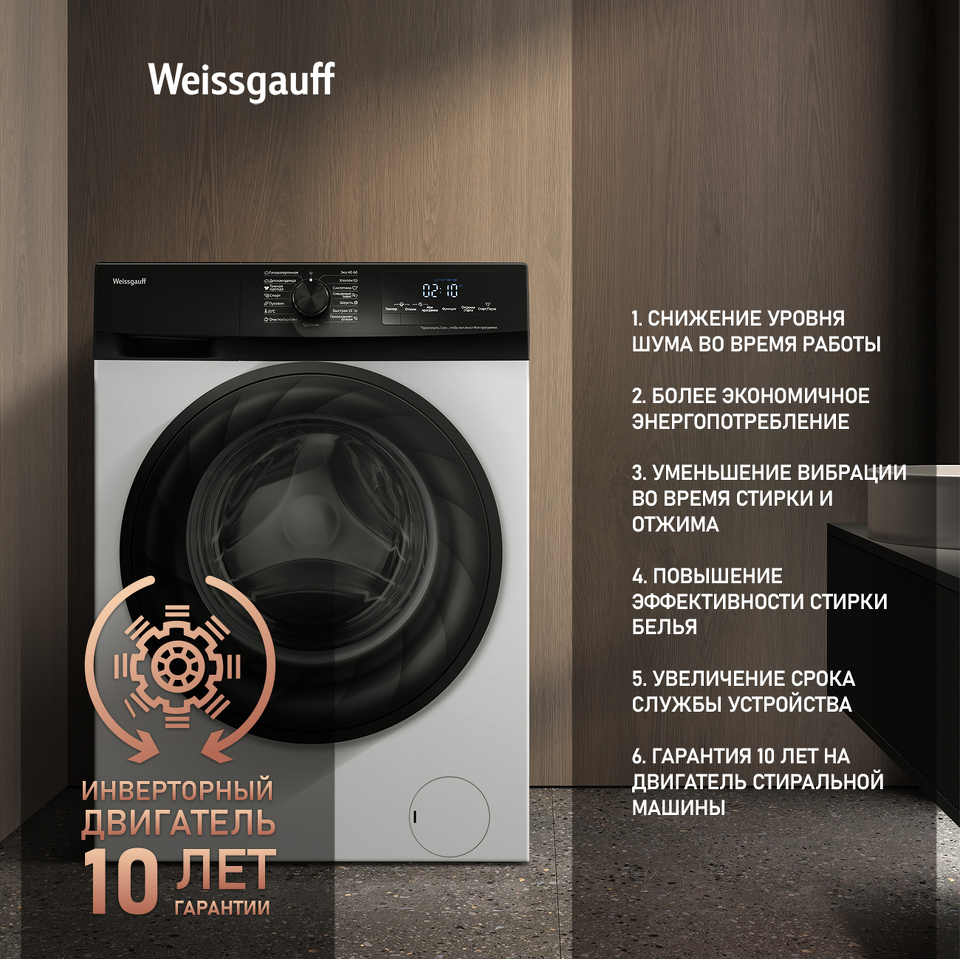 10 лет гарантии на инверторный двигатель - это живое подтверждение немецкой уверенности Weissgauff в качестве выпускаемой нами продукции!