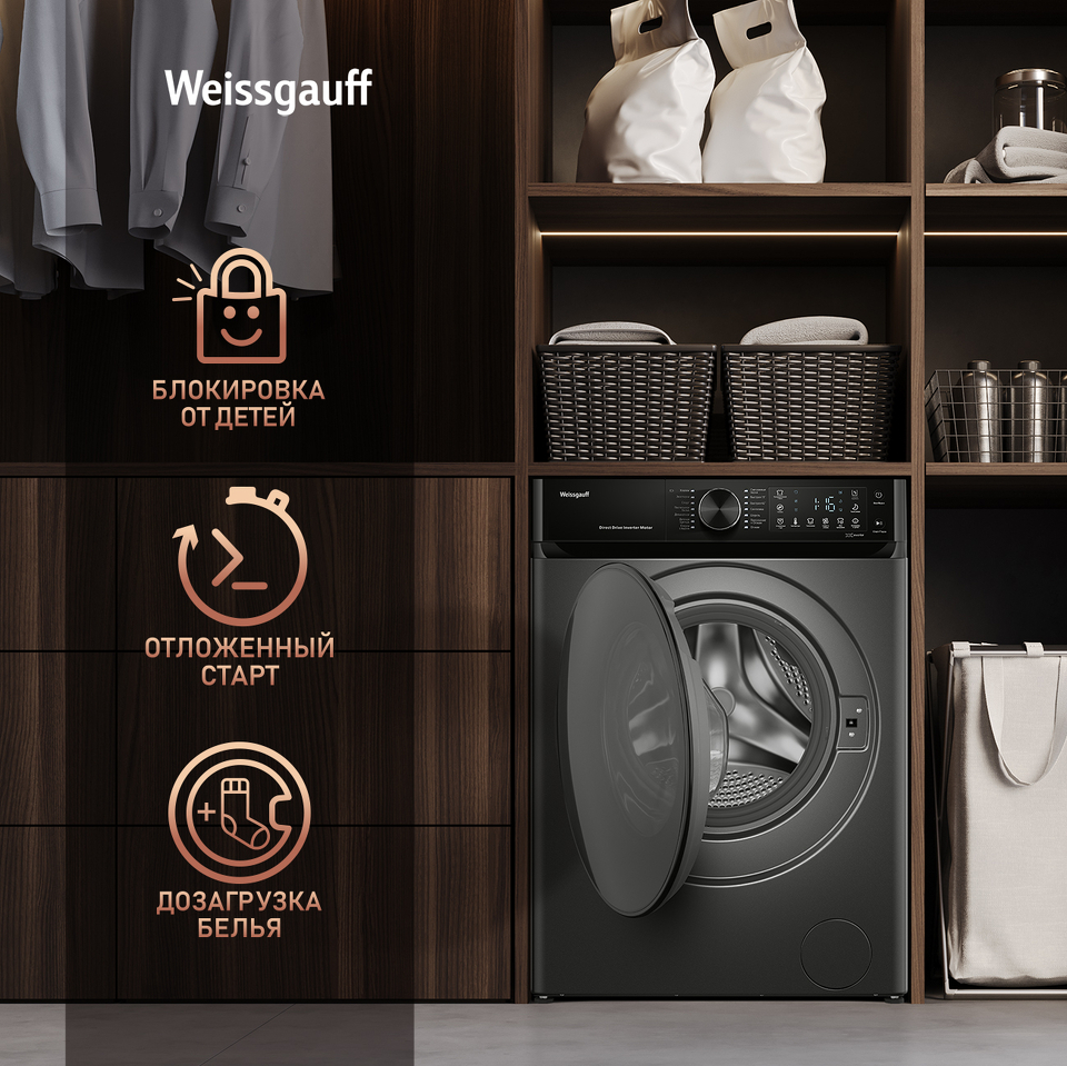 FAMILY- комплект! Данная модель идеальна для установки в колонну с сушильной машиной Weissgauff WD 5910 Heat Pump Deep Grey или Weissgauff WD 6010 Heat Pump Deep Grey, образуя цельный и гармоничный комплект бытовой техники, выполненный в едином дизайне! Обратите внимание, что для установки в колонну потребуется дополнительно приобрести Cоединительный элемент Weissgauff WSK 30300 Deep Grey.