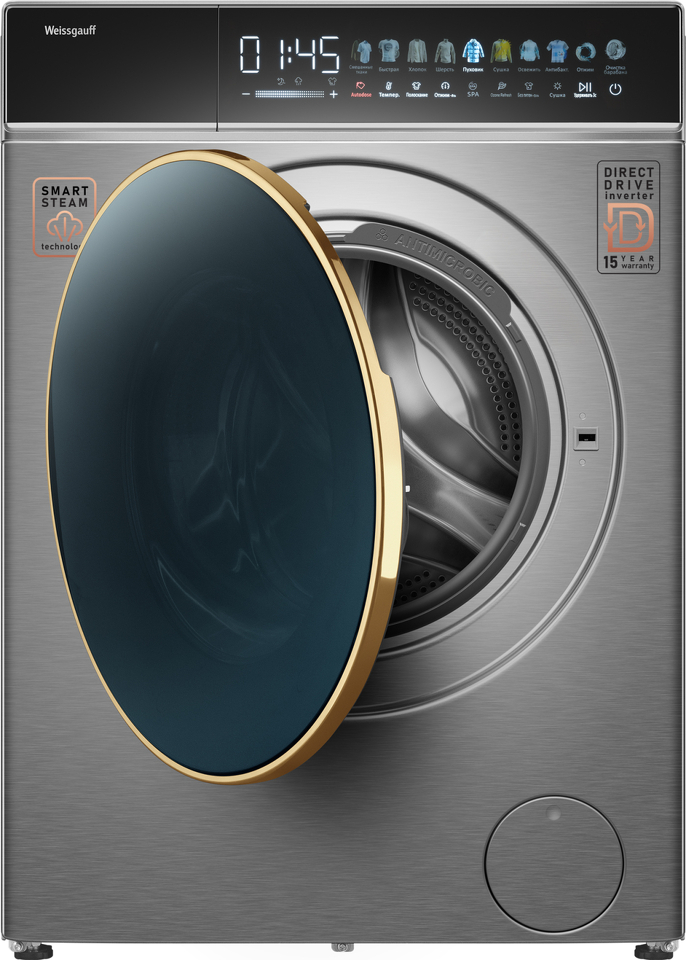Отдельностоящая стиральная машина Weissgauff с функцией сушки, выполненная в цвете "нержавеющая сталь", оснащенная прямым приводом, инверторным двигателем и функцией пара, имеющая показатели загрузки до 11 кг белья при стирке и до 6 кг белья при сушке, скорость отжима до 1400 оборотов в минуту, а также цветной дисплей SMART SCREEN, функции автодозирования и озонирования - это одна из наиболее передовых моделей Weissgauff в категории стиральных машин!