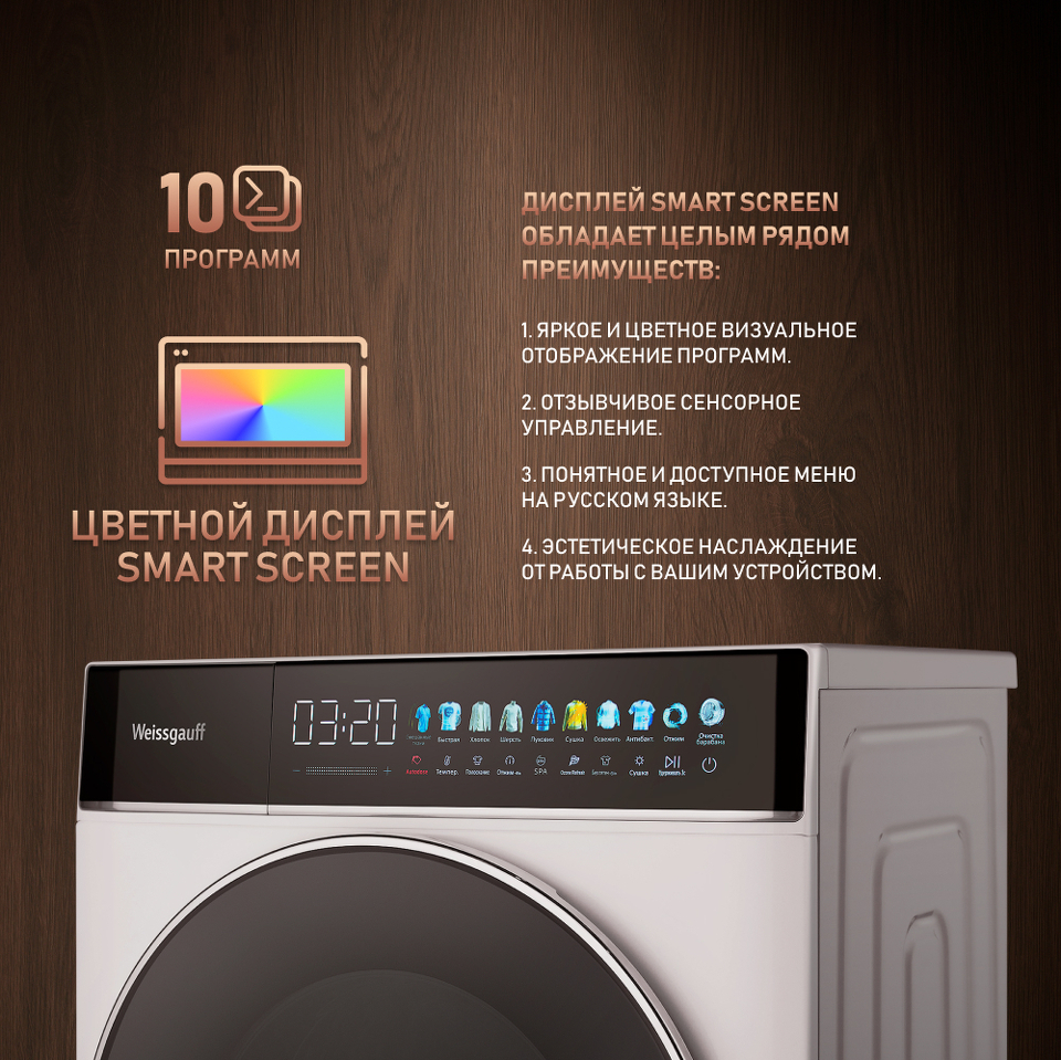 Цветной дисплей SMART SCREEN с сенсорным управлением отражает всю современность и технологичность подходов Weissgauff к созданию своих устройств, делая процесс взаимодействия с данной моделью ещё более простым и удобным!