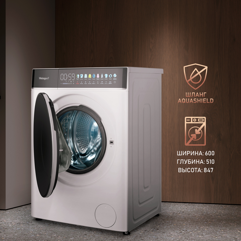 Отдельностоящая стиральная машина Weissgauff с функцией сушки, оснащенная прямым приводом, инверторным двигателем и функцией пара, имеющая показатели загрузки до 11 кг белья при стирке и до 6 кг белья при сушке, скорость отжима до 1400 оборотов в минуту, а также цветной дисплей SMART SCREEN, функции автодозирования и озонирования - это одна из наиболее передовых моделей Weissgauff в категории стиральных машин!