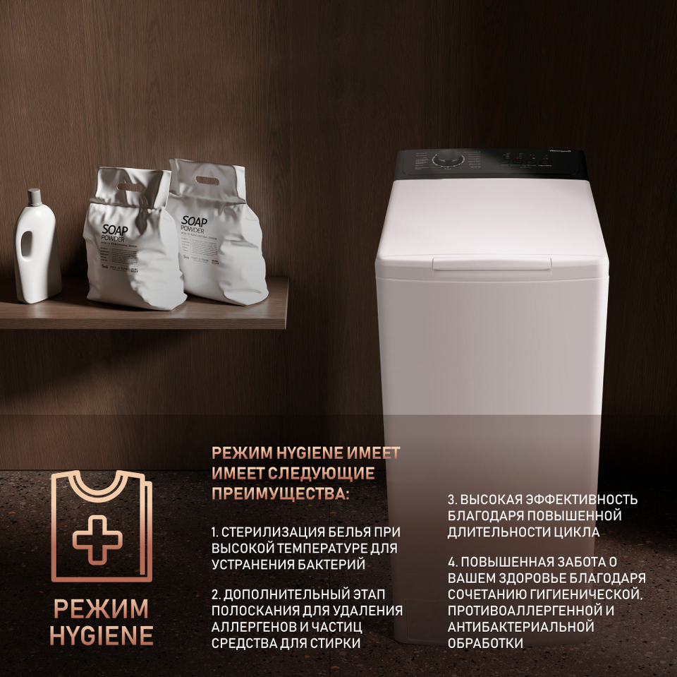 Режим Hygiene 90 С эффективно стерилизует вещи, устраняя большинство вредоносных бактерий!