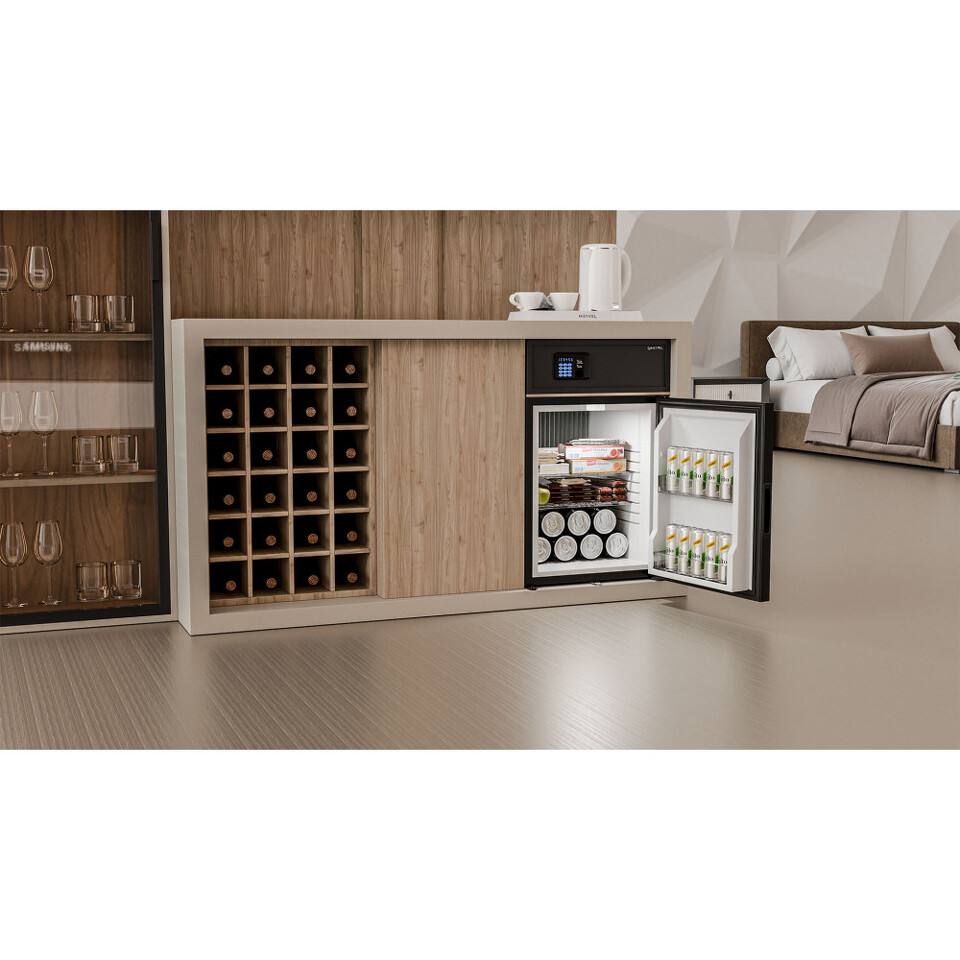 В абсорбционной системе охлаждения отсутствуют движущиеся части, поэтому прибор работает бесшумно, что важно для гостиниц, спален и офисов, где тишина играет важную роль. Мини-бар не создает вибраций и издает неприятных звуков, не нарушая сон или рабочую атмосферу.